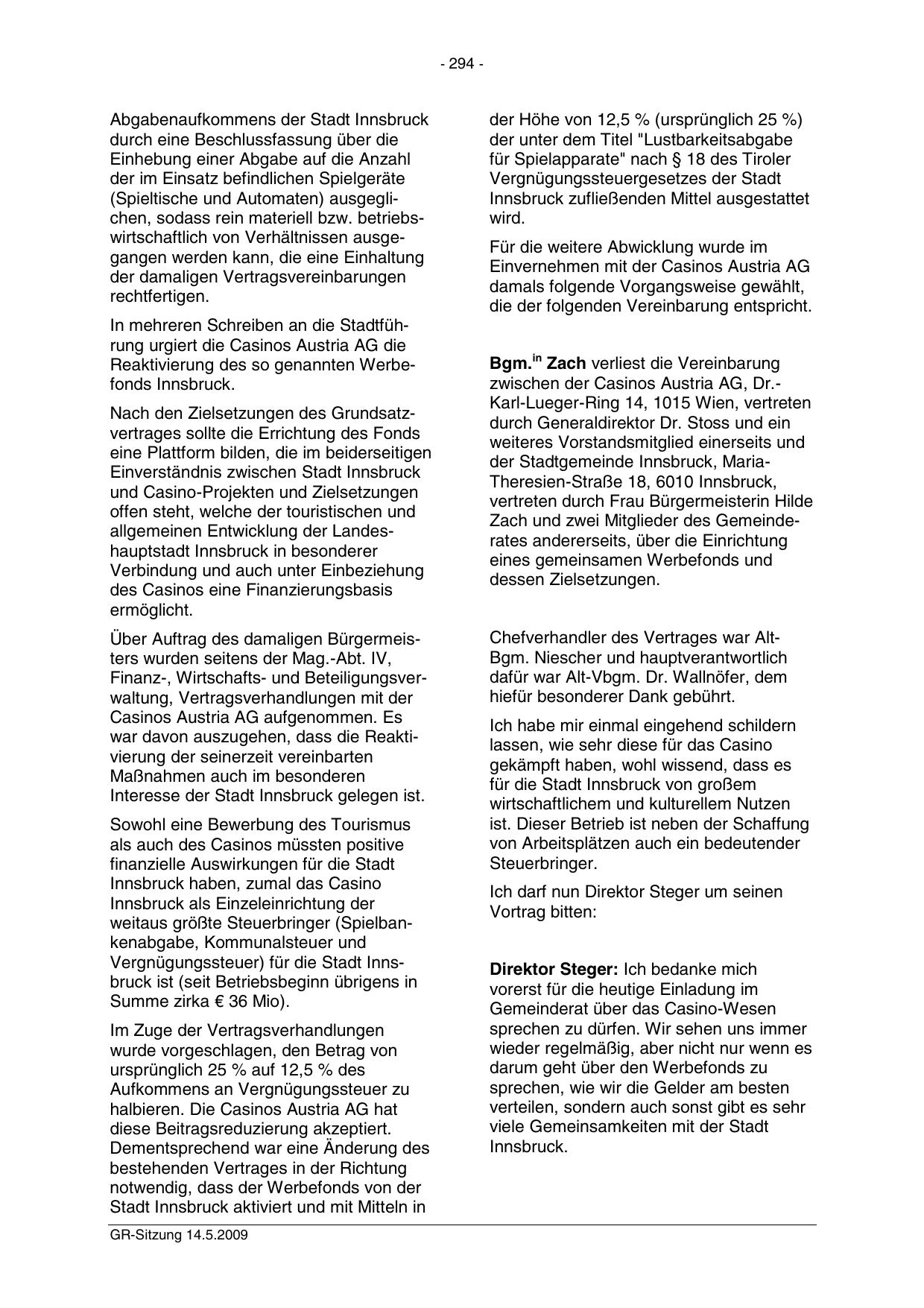 Innsbruck haben, zumal das Casino
