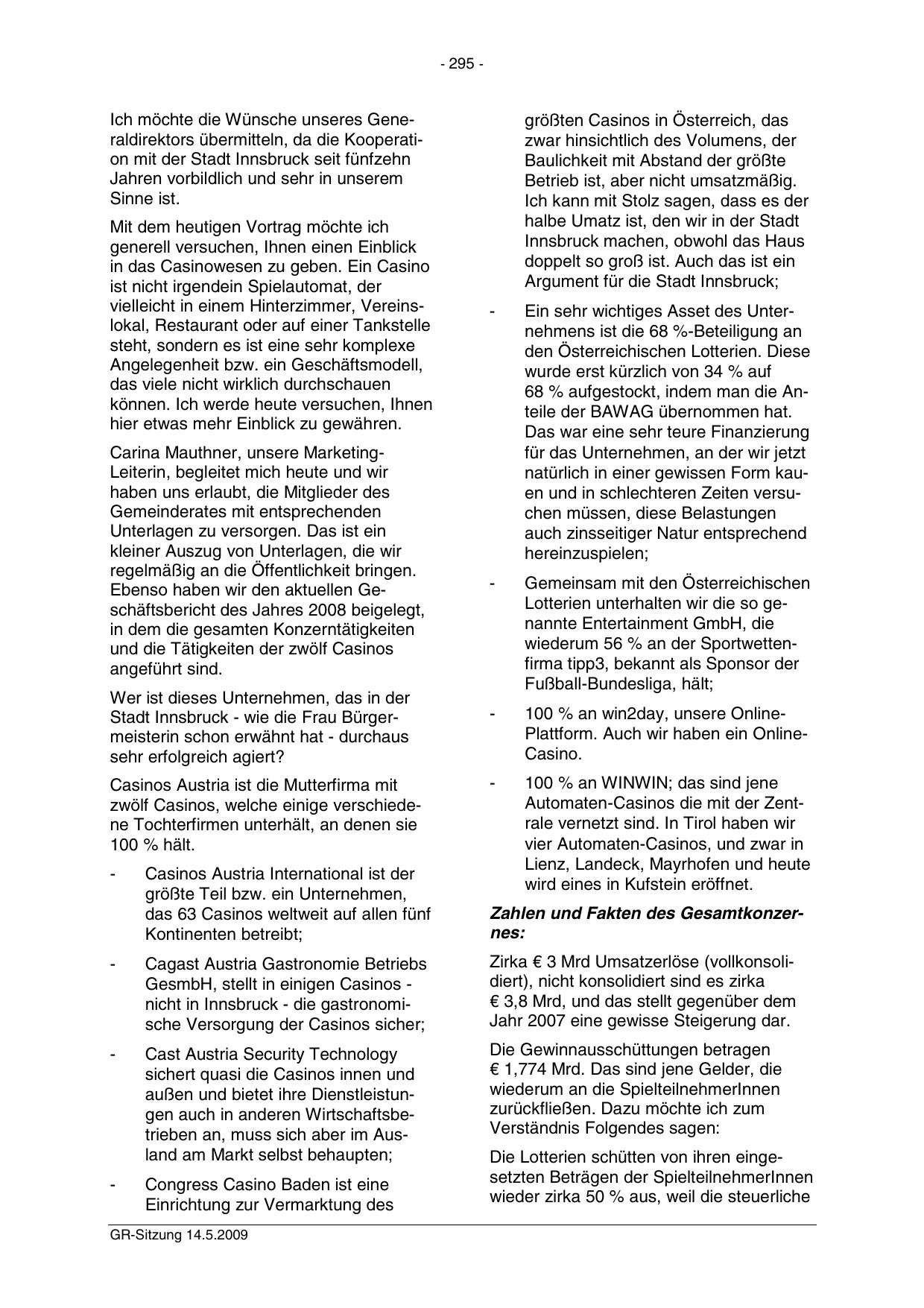 GesmbH, stellt in einigen Casinos nicht in Innsbruck - die gastronomische Versorgung der Casinos sicher;