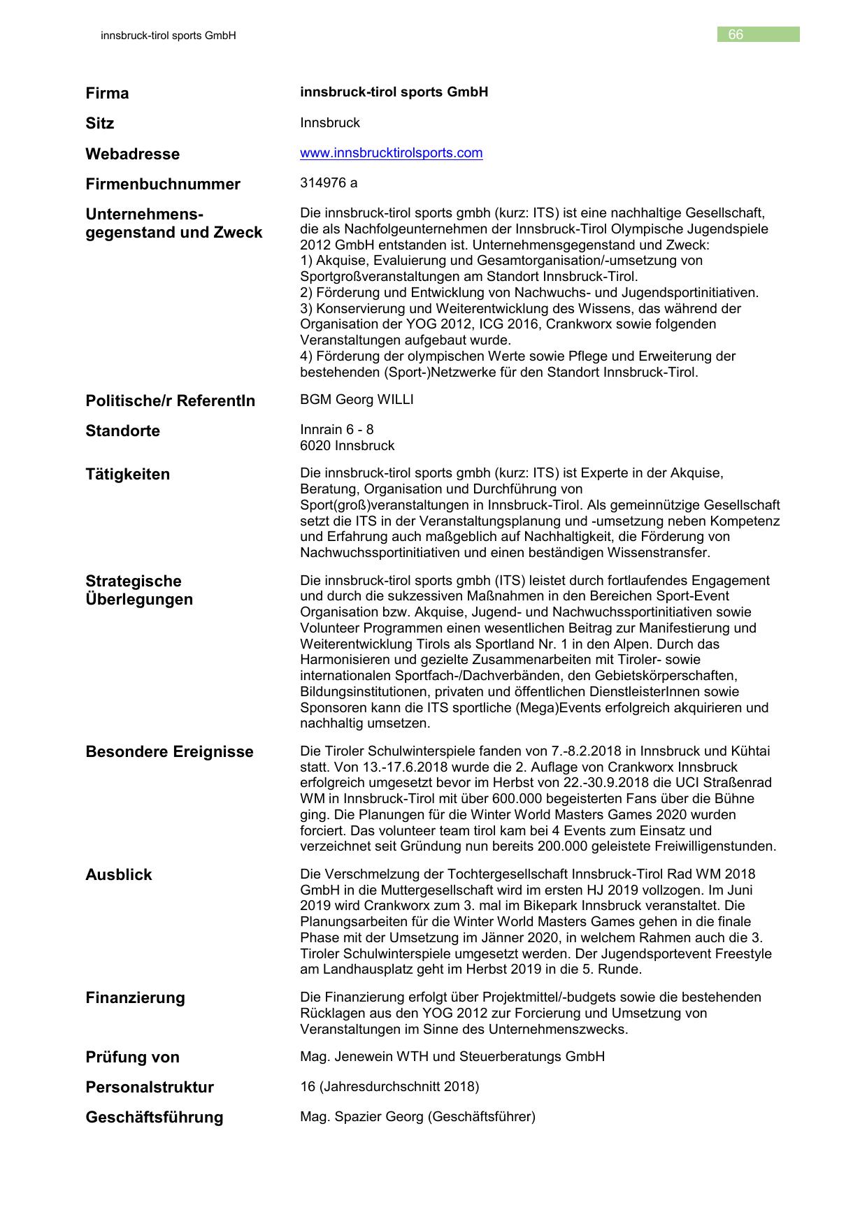 Die innsbruck-tirol sports gmbh (kurz: ITS) ist eine nachhaltige Gesellschaft,