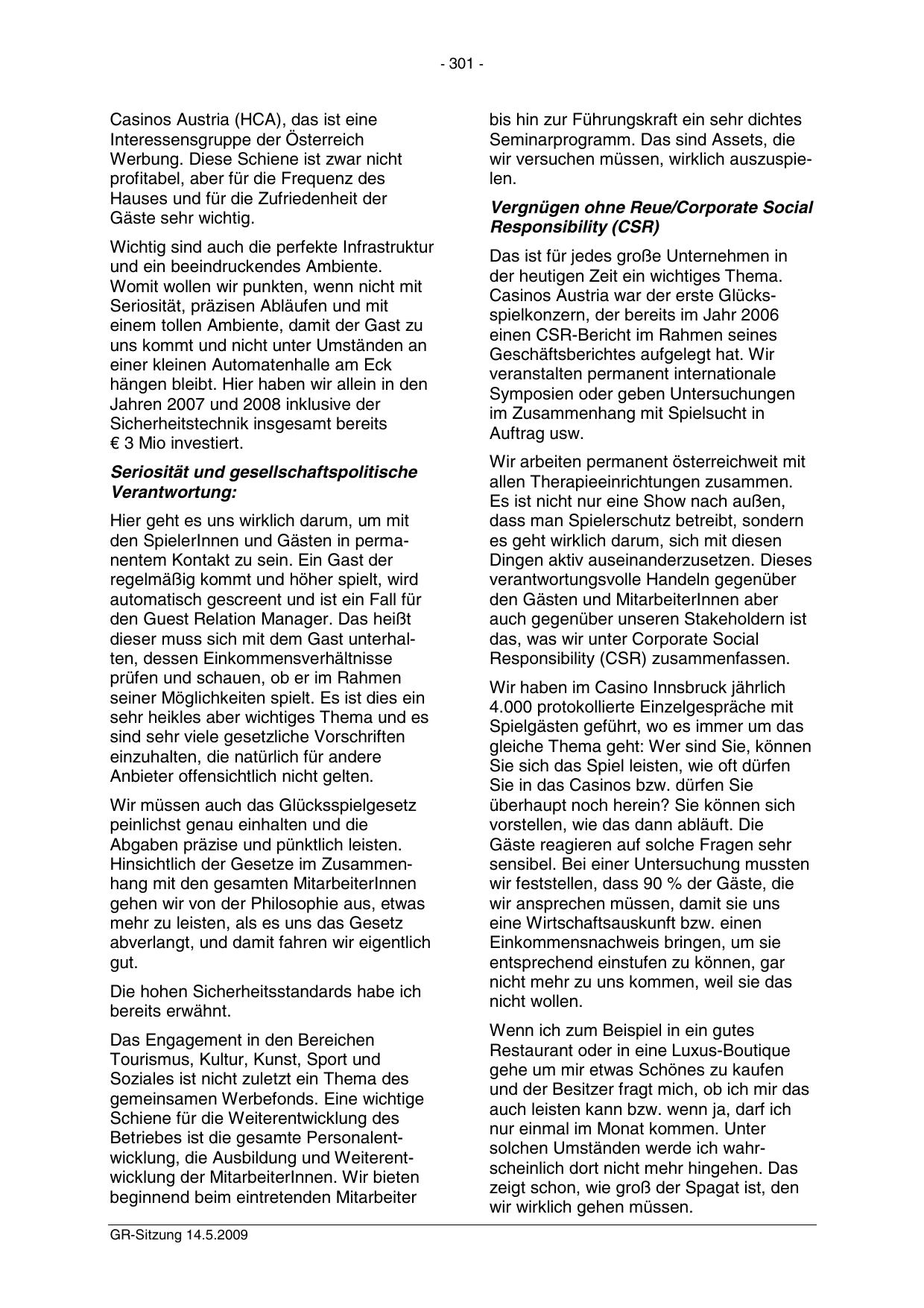 Wir haben im Casino Innsbruck jährlich