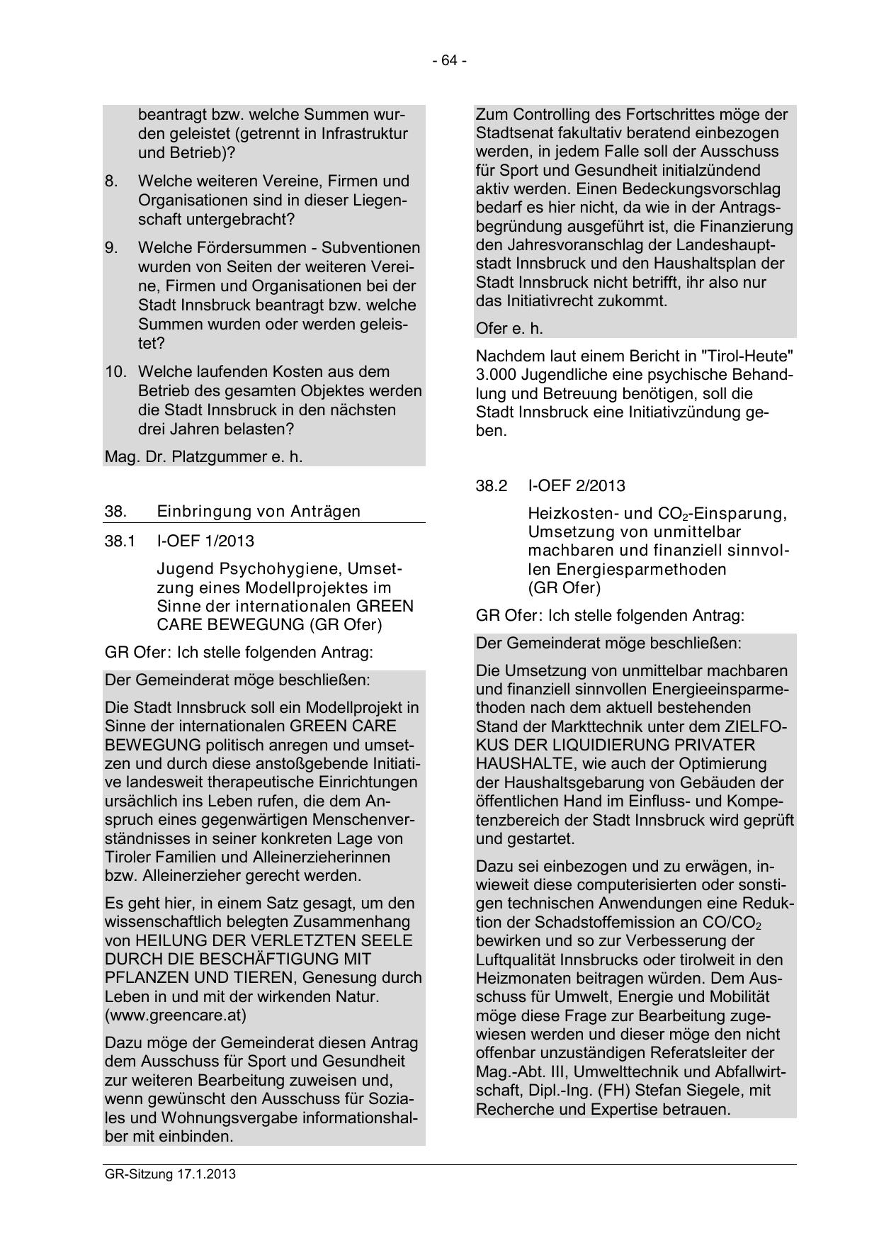 Stadt Innsbruck nicht betrifft, ihr also nur