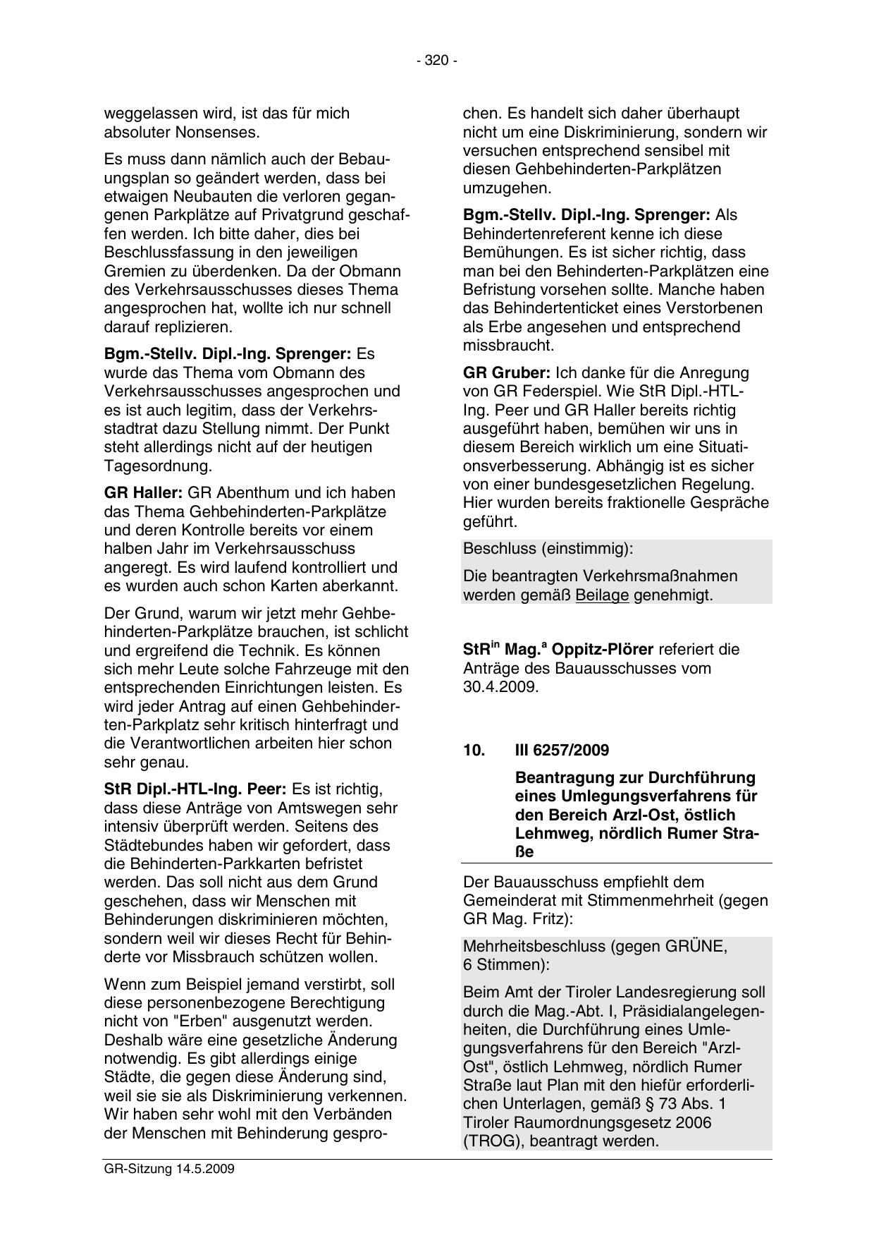 der Menschen mit Behinderung gesproGR-Sitzung 14.5.2009