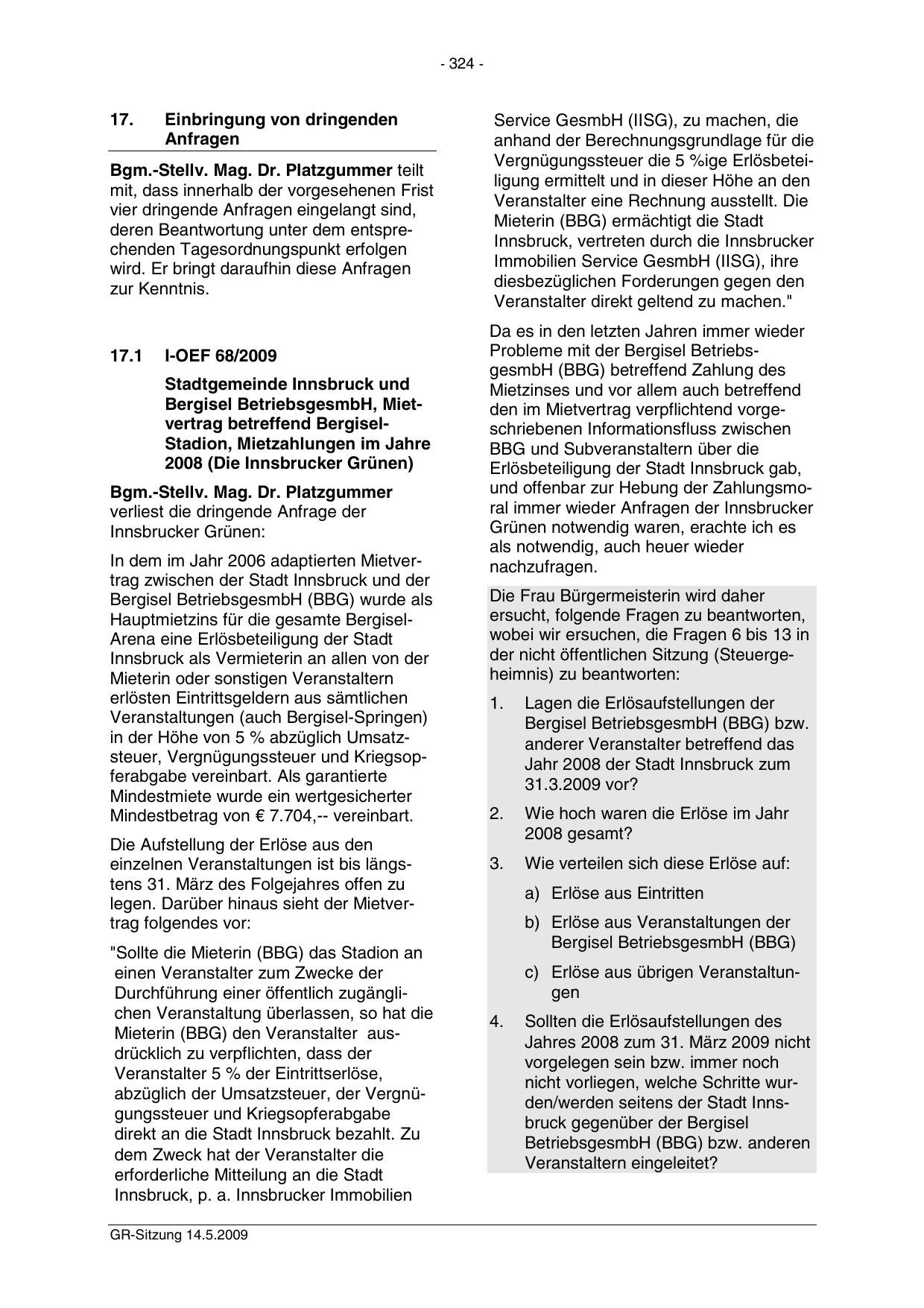 Erlösbeteiligung der Stadt Innsbruck gab,