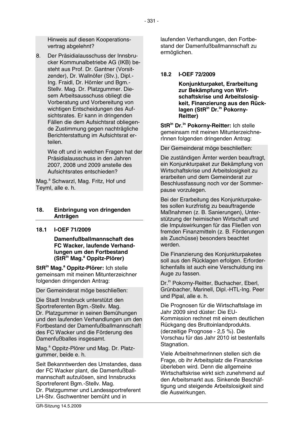 zur Bekämpfung von Wirtschaftskrise und Arbeitslosigkeit, Finanzierung aus den Rücklagen (StRin Dr.in PokornyReitter)