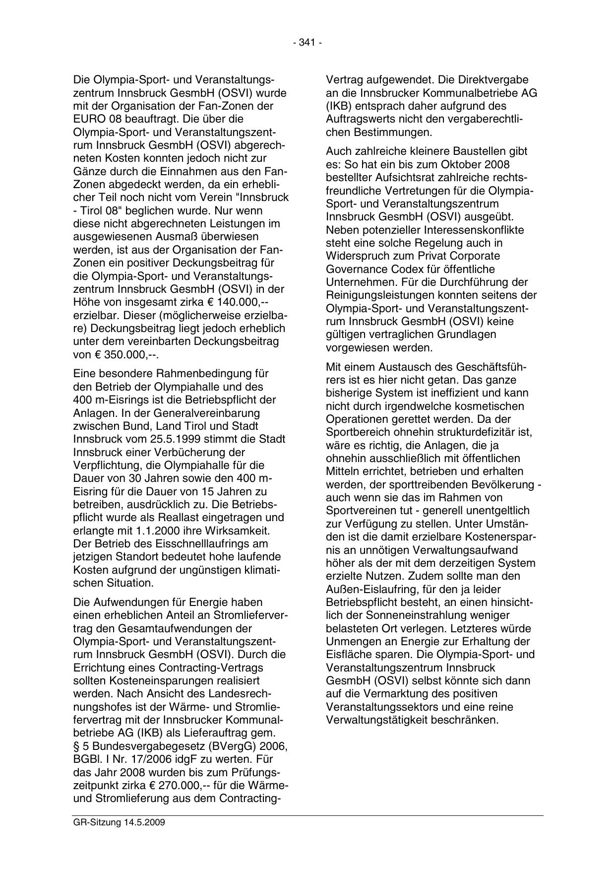 das Jahr 2008 wurden bis zum Prüfungszeitpunkt zirka € 270.000,-- für die Wärmeund Stromlieferung aus dem ContractingGR-Sitzung 14.5.2009