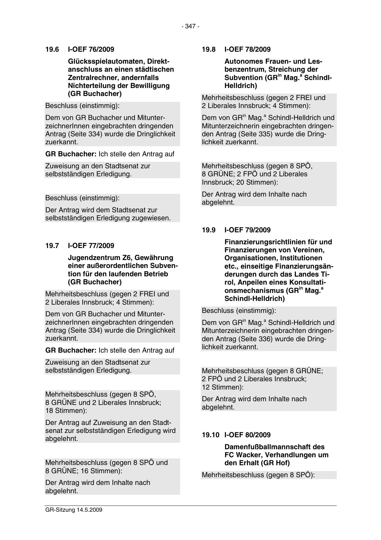 Mehrheitsbeschluss (gegen 8 SPÖ und