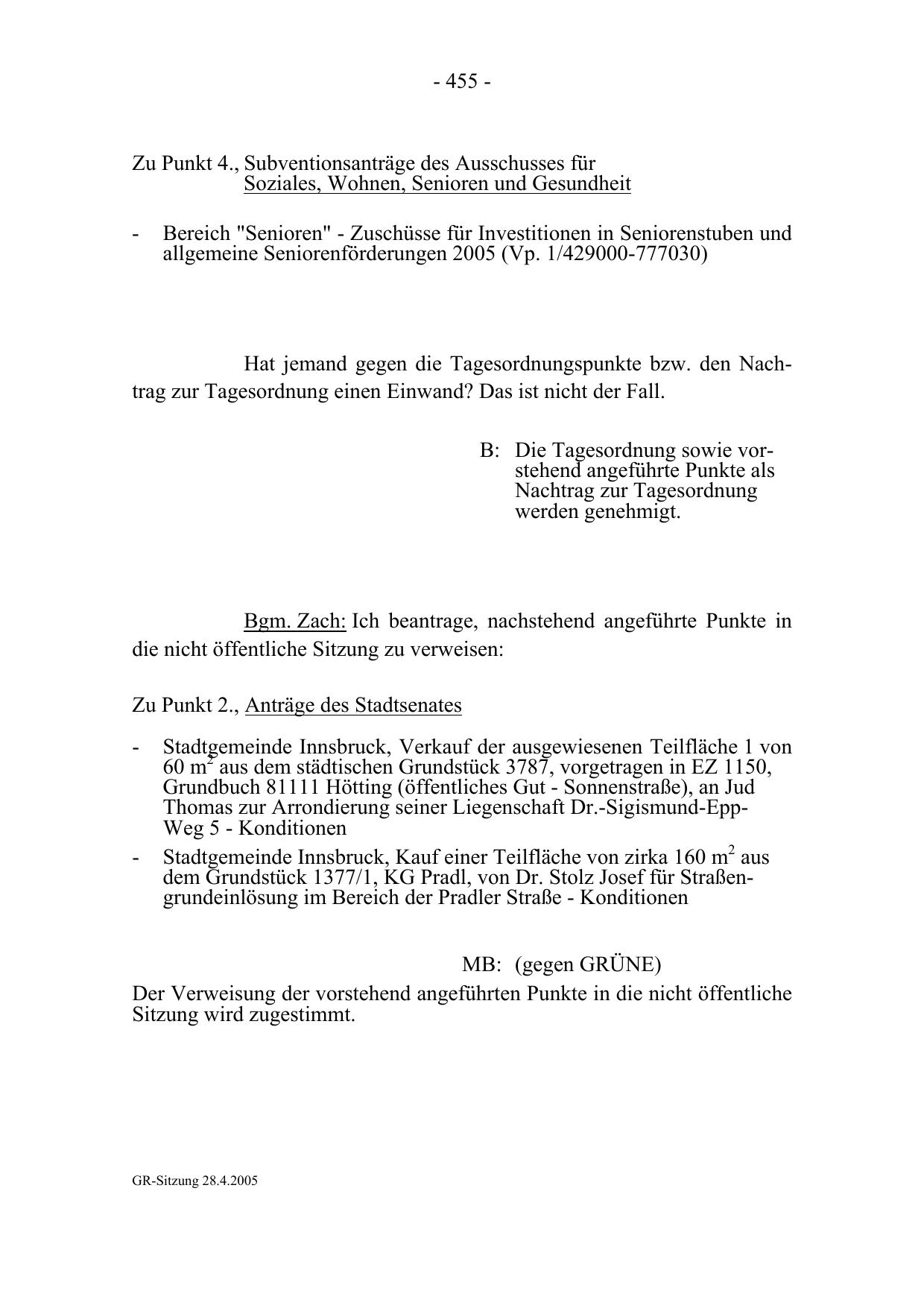 Bgm. Zach: Ich beantrage, nachstehend angeführte Punkte in