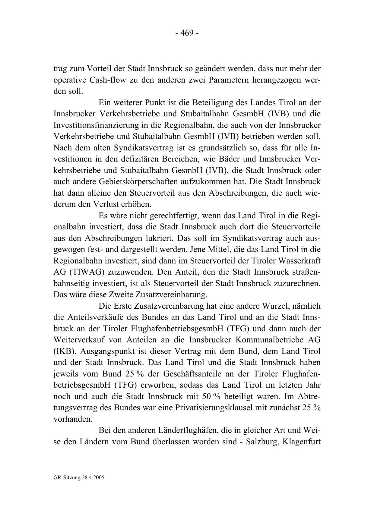 noch und auch die Stadt Innsbruck mit 50 % beteiligt waren. Im Abtretungsvertrag des Bundes war eine Privatisierungsklausel mit zunächst 25 %