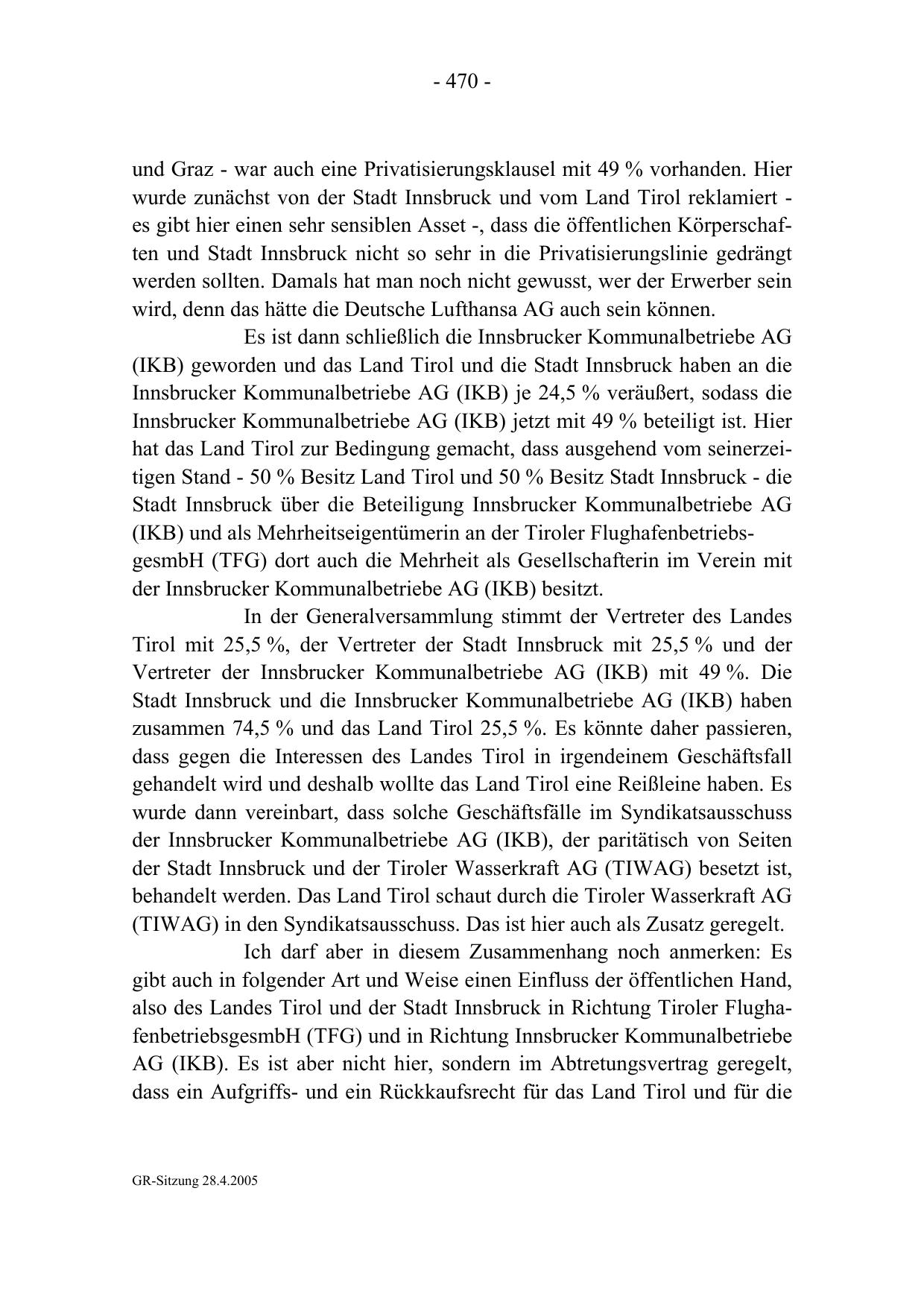 (IKB) und als Mehrheitseigentümerin an der Tiroler FlughafenbetriebsgesmbH (TFG) dort auch die Mehrheit als Gesellschafterin im Verein mit