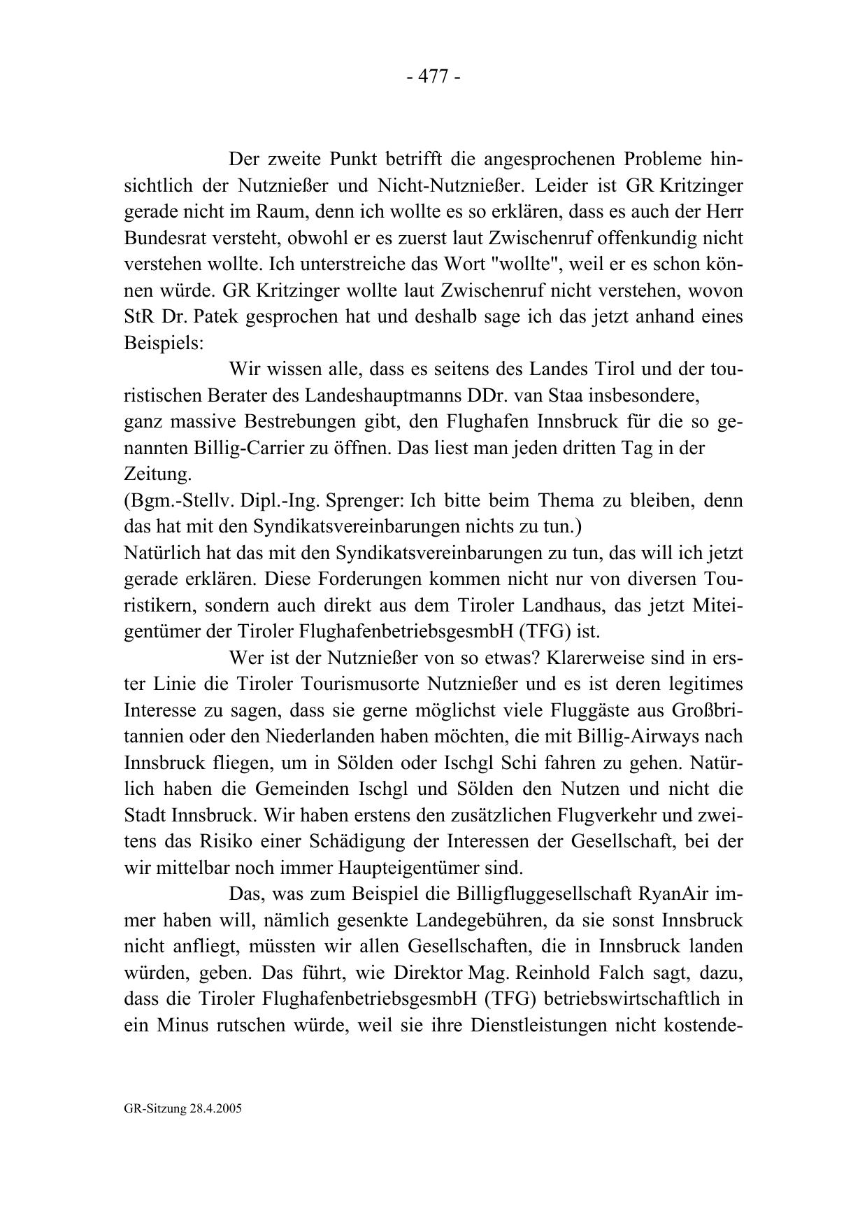 Stadt Innsbruck. Wir haben erstens den zusätzlichen Flugverkehr und zweitens das Risiko einer Schädigung der Interessen der Gesellschaft, bei der