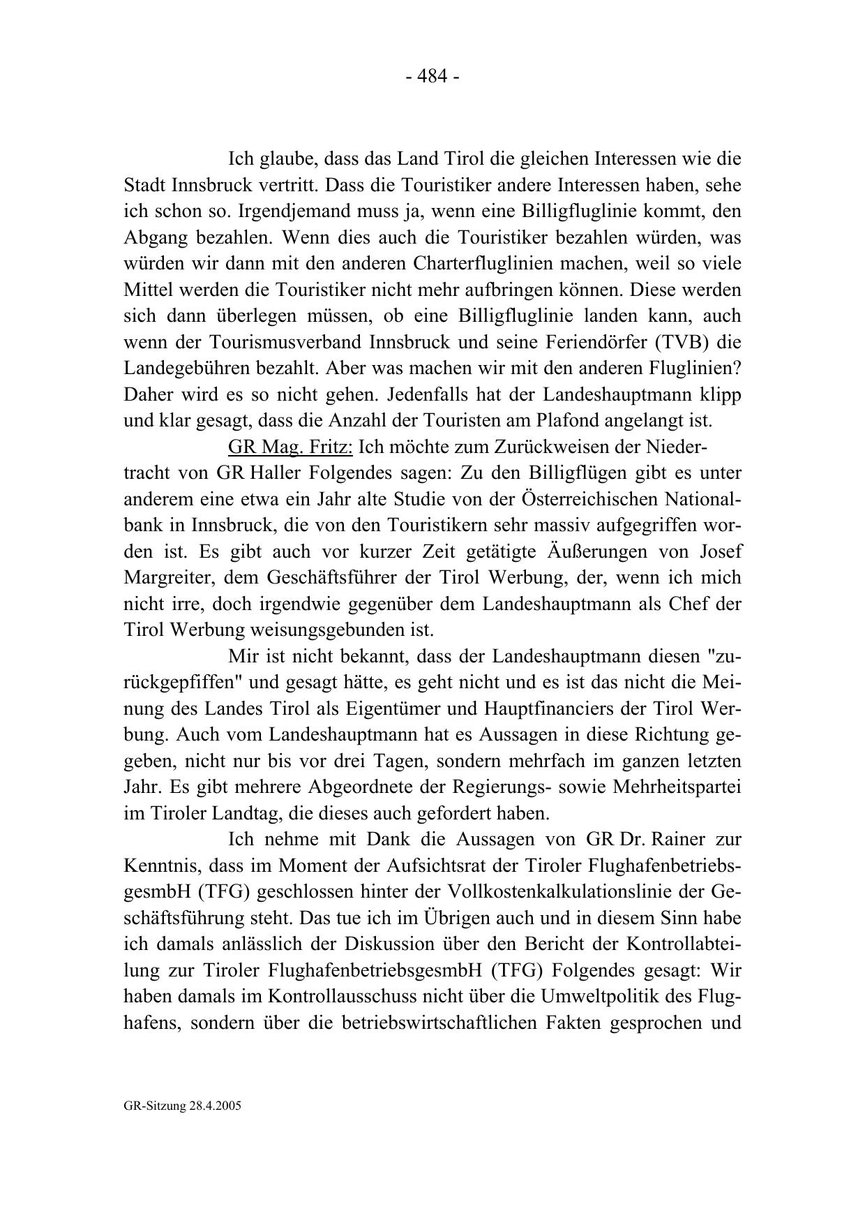 GR Mag. Fritz: Ich möchte zum Zurückweisen der Niedertracht von GR Haller Folgendes sagen: Zu den Billigflügen gibt es unter
