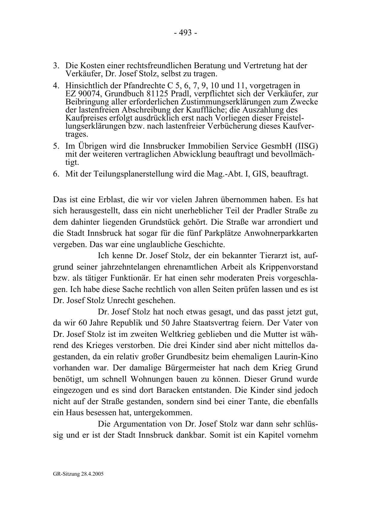 Die Argumentation von Dr. Josef Stolz war dann sehr schlüssig und er ist der Stadt Innsbruck dankbar. Somit ist ein Kapitel vornehm