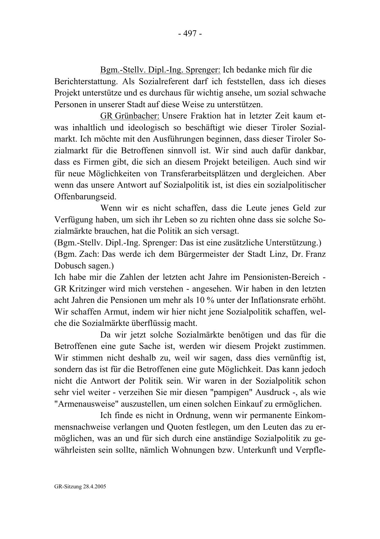GR Grünbacher: Unsere Fraktion hat in letzter Zeit kaum etwas inhaltlich und ideologisch so beschäftigt wie dieser Tiroler Sozialmarkt. Ich möchte mit den Ausführungen beginnen, dass dieser Tiroler Sozialmarkt für die Betroffenen sinnvoll ist. Wir sind auch dafür dankbar,