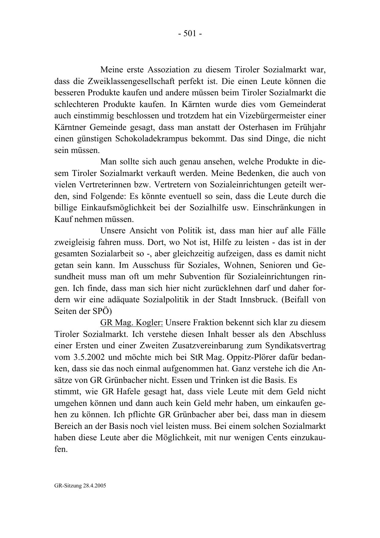 vom 3.5.2002 und möchte mich bei StR Mag. Oppitz-Plörer dafür bedanken, dass sie das noch einmal aufgenommen hat. Ganz verstehe ich die Ansätze von GR Grünbacher nicht. Essen und Trinken ist die Basis. Es