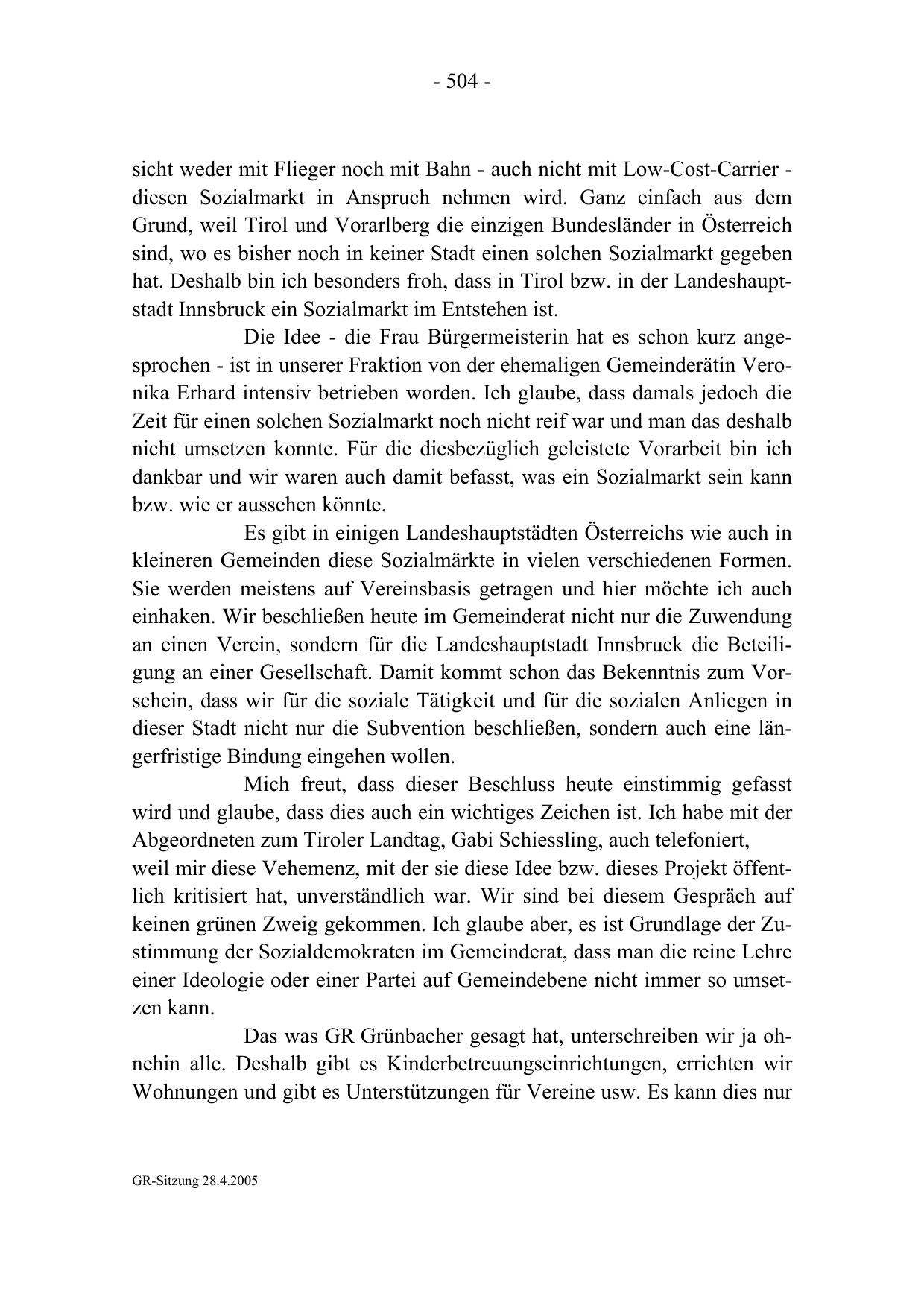 an einen Verein, sondern für die Landeshauptstadt Innsbruck die Beteiligung an einer Gesellschaft. Damit kommt schon das Bekenntnis zum Vorschein, dass wir für die soziale Tätigkeit und für die sozialen Anliegen in