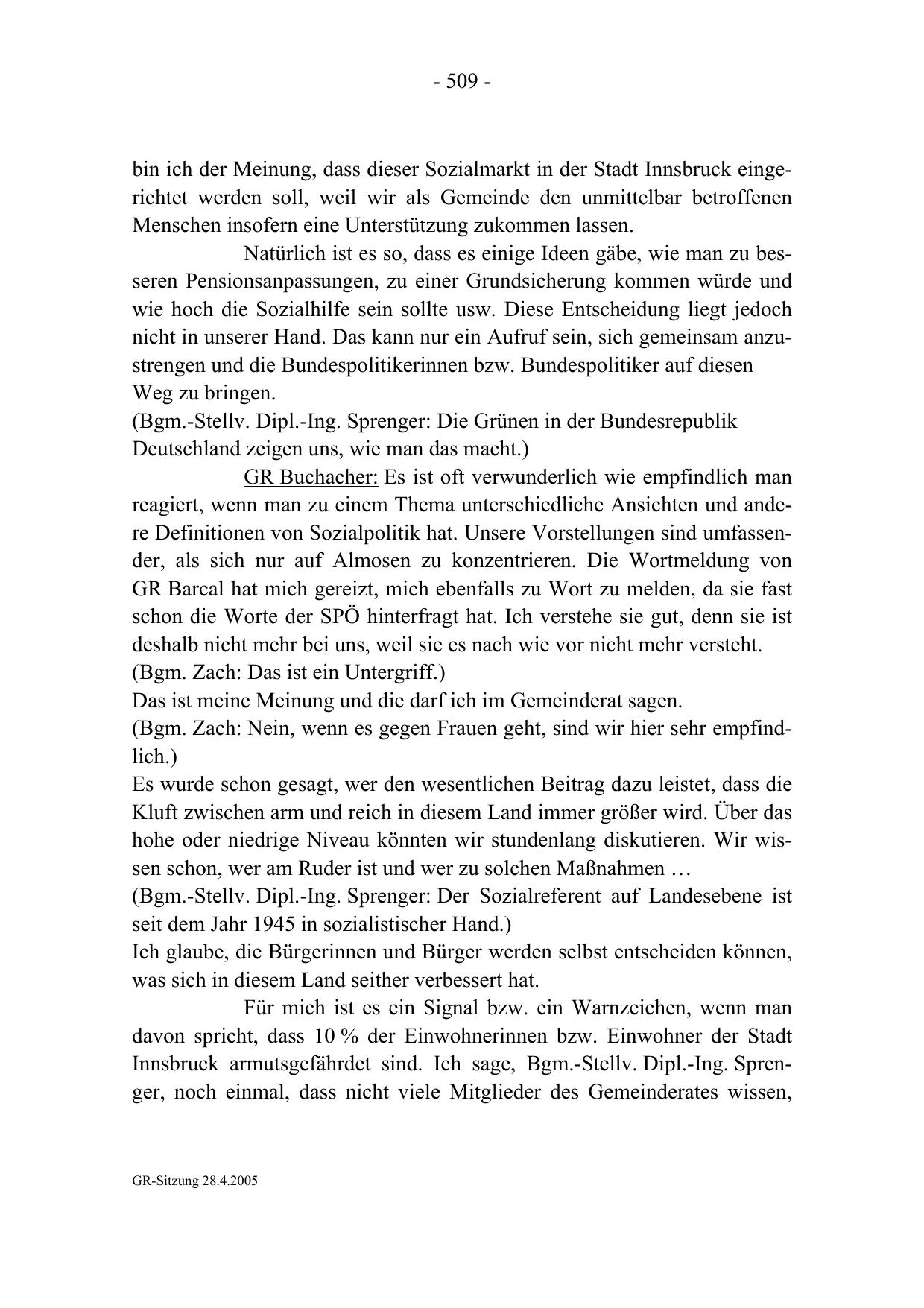 Innsbruck armutsgefährdet sind. Ich sage, Bgm.-Stellv. Dipl.-Ing. Sprenger, noch einmal, dass nicht viele Mitglieder des Gemeinderates wissen,