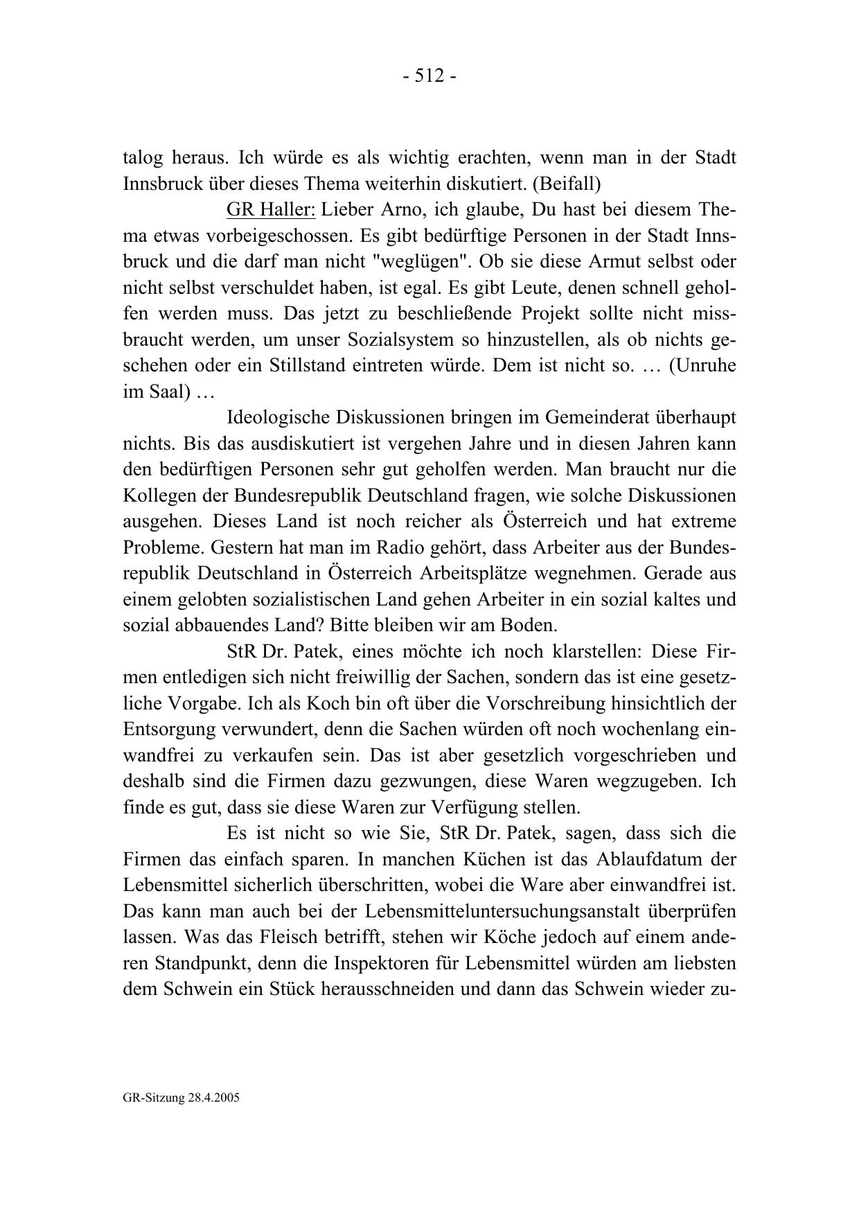 GR Haller: Lieber Arno, ich glaube, Du hast bei diesem Thema etwas vorbeigeschossen. Es gibt bedürftige Personen in der Stadt Innsbruck und die darf man nicht "weglügen". Ob sie diese Armut selbst oder