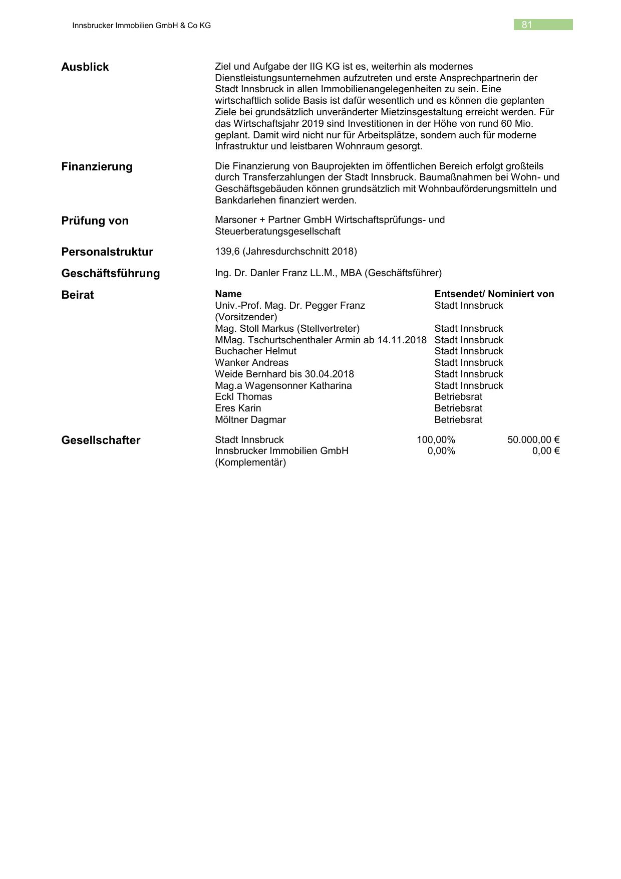 durch Transferzahlungen der Stadt Innsbruck. Baumaßnahmen bei Wohn- und