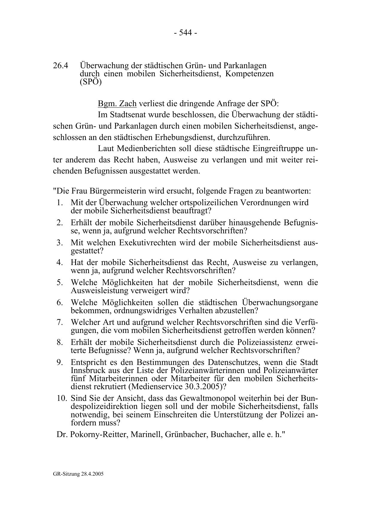 Bgm. Zach verliest die dringende Anfrage der SPÖ: