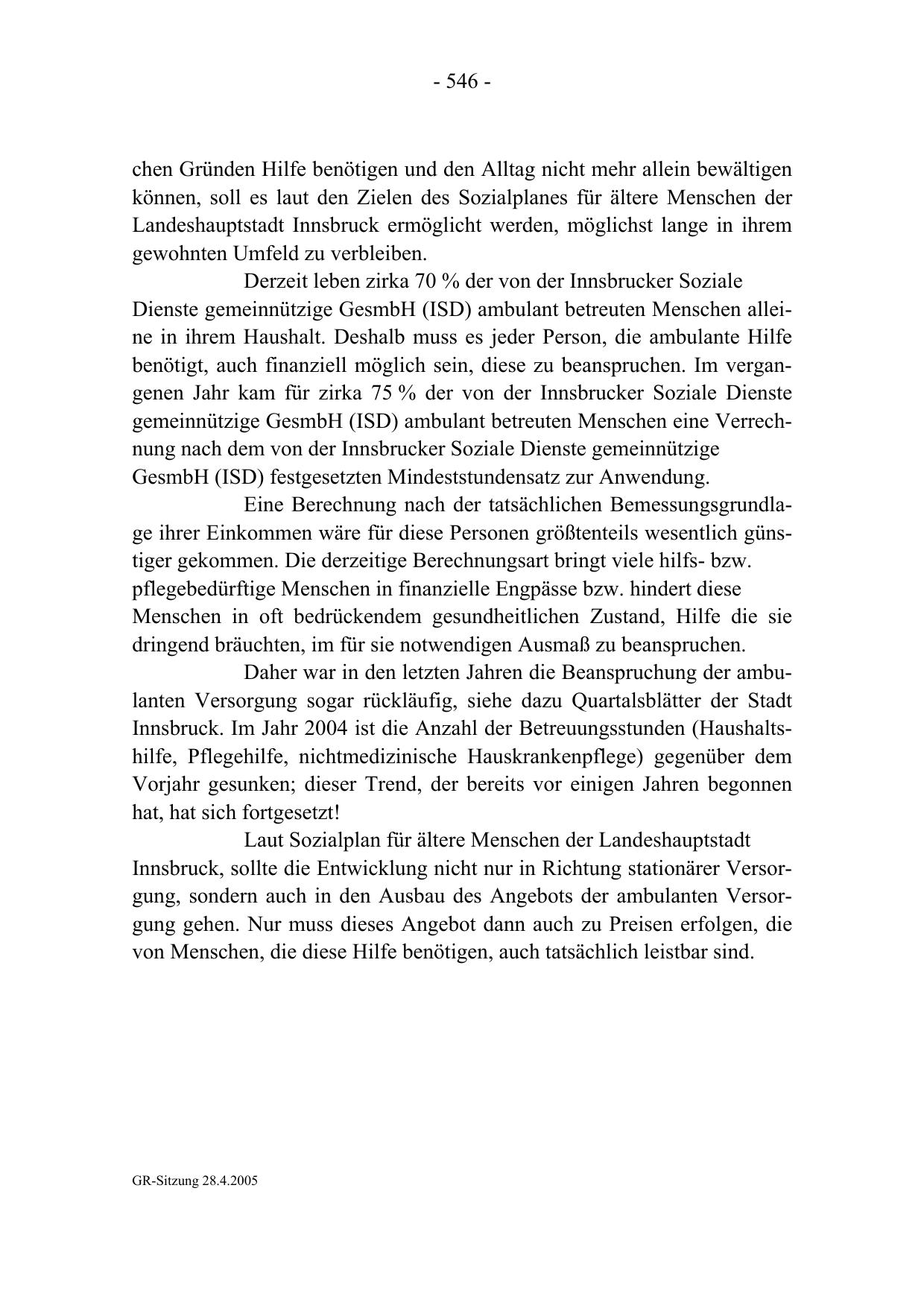 Innsbruck. Im Jahr 2004 ist die Anzahl der Betreuungsstunden (Haushaltshilfe, Pflegehilfe, nichtmedizinische Hauskrankenpflege) gegenüber dem