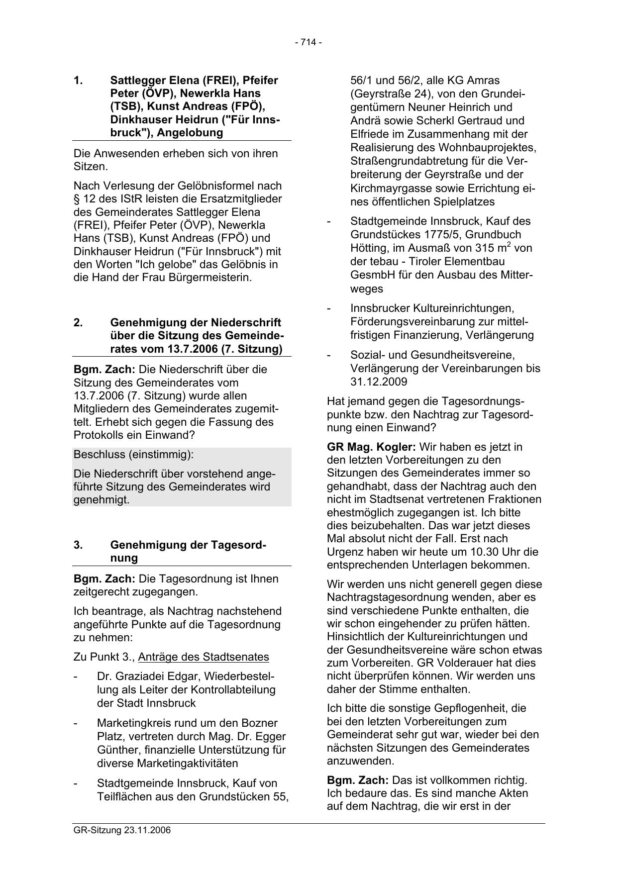Bgm. Zach: Die Tagesordnung ist Ihnen