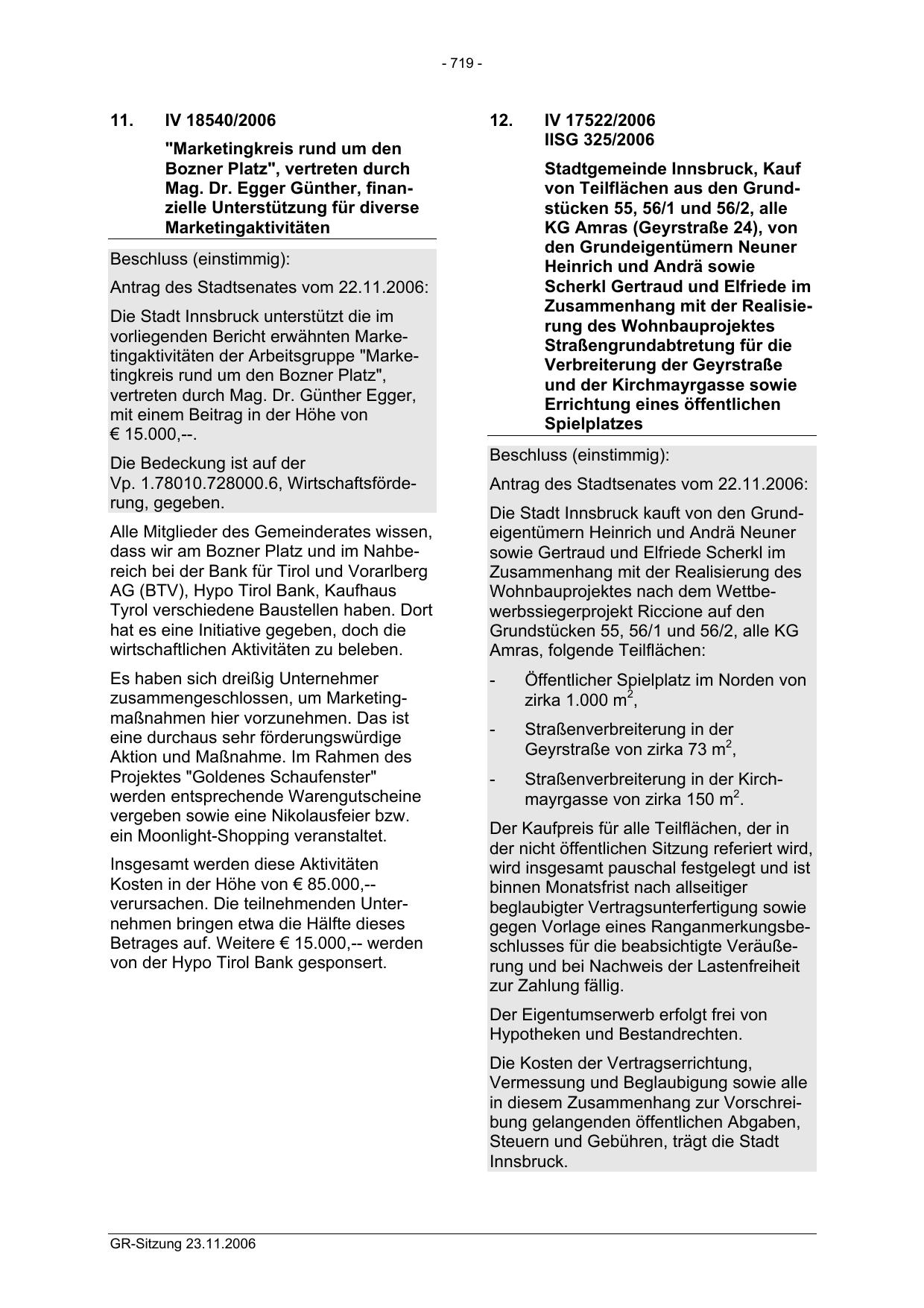Die Stadt Innsbruck kauft von den Grundeigentümern Heinrich und Andrä Neuner