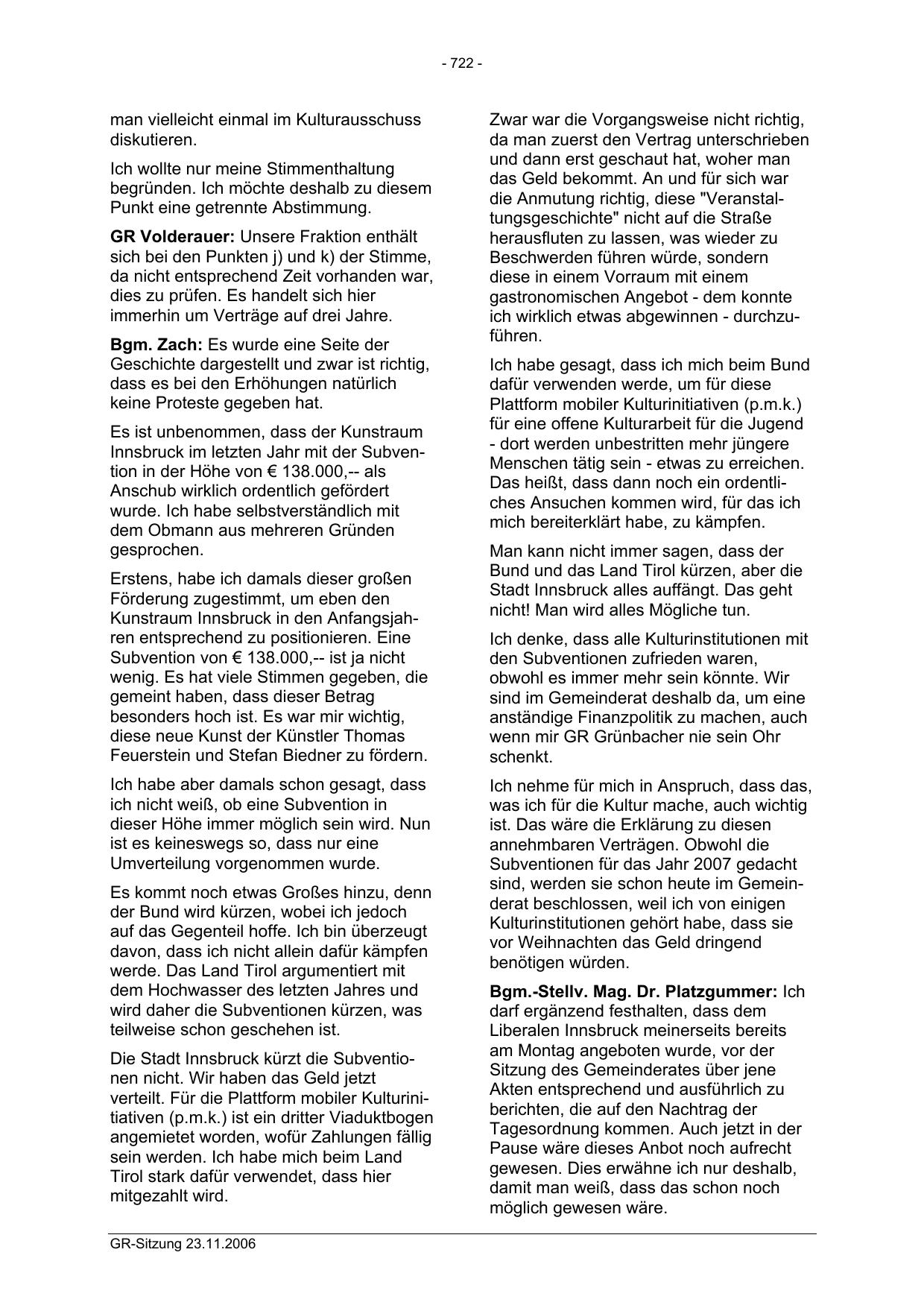 Bgm.-Stellv. Mag. Dr. Platzgummer: Ich
