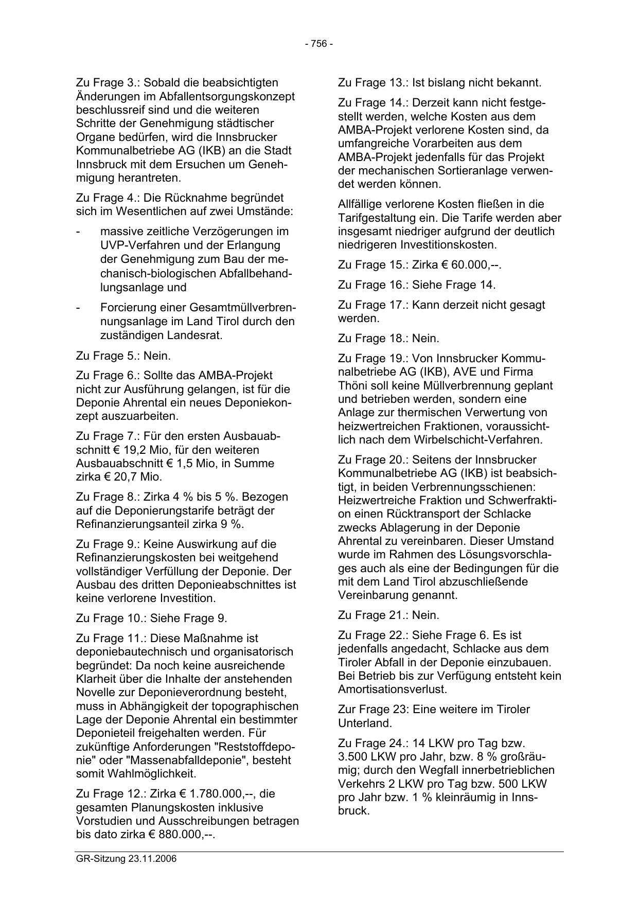 Zu Frage 19.: Von Innsbrucker Kommunalbetriebe AG (IKB), AVE und Firma