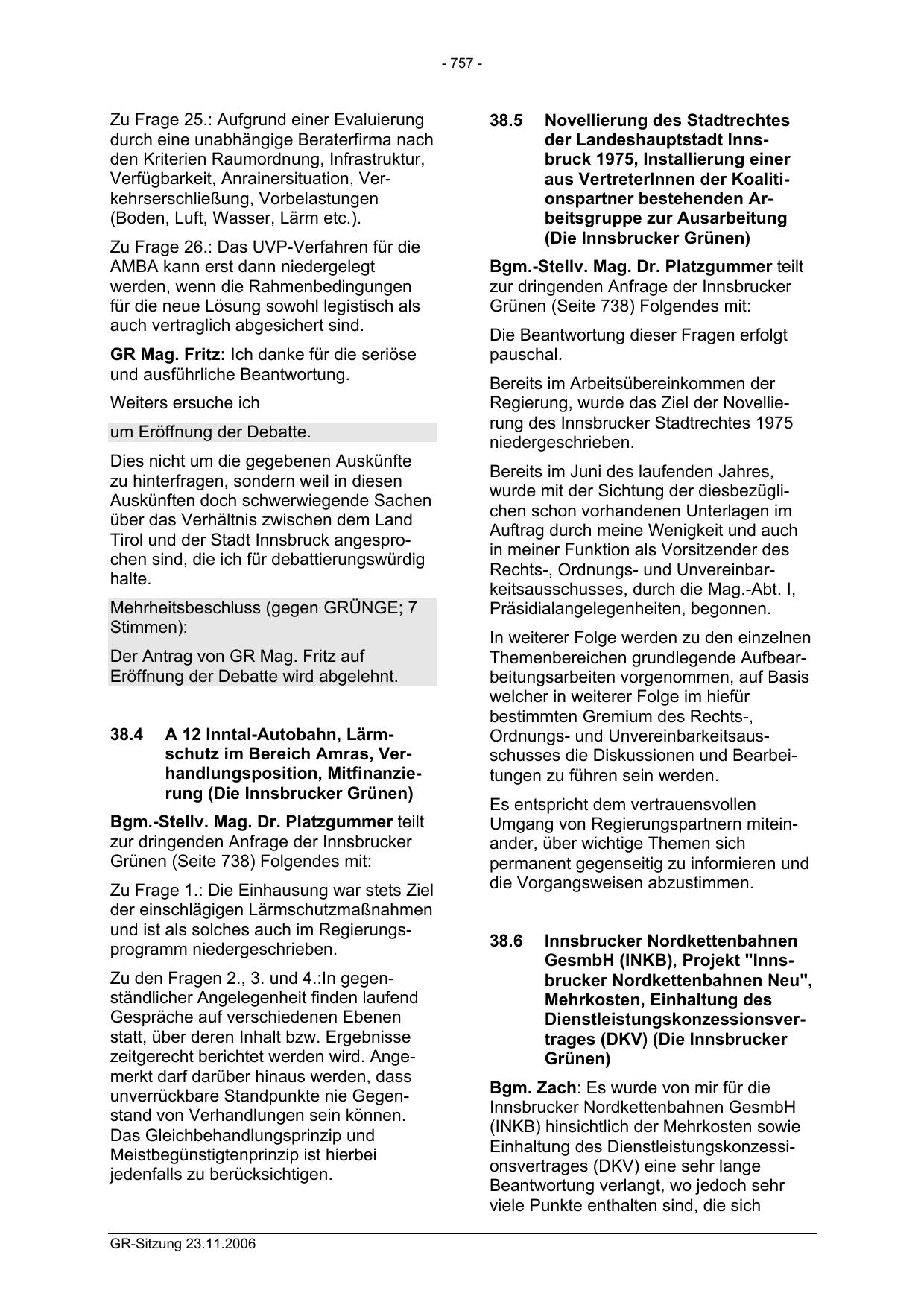 Tirol und der Stadt Innsbruck angesprochen sind, die ich für debattierungswürdig