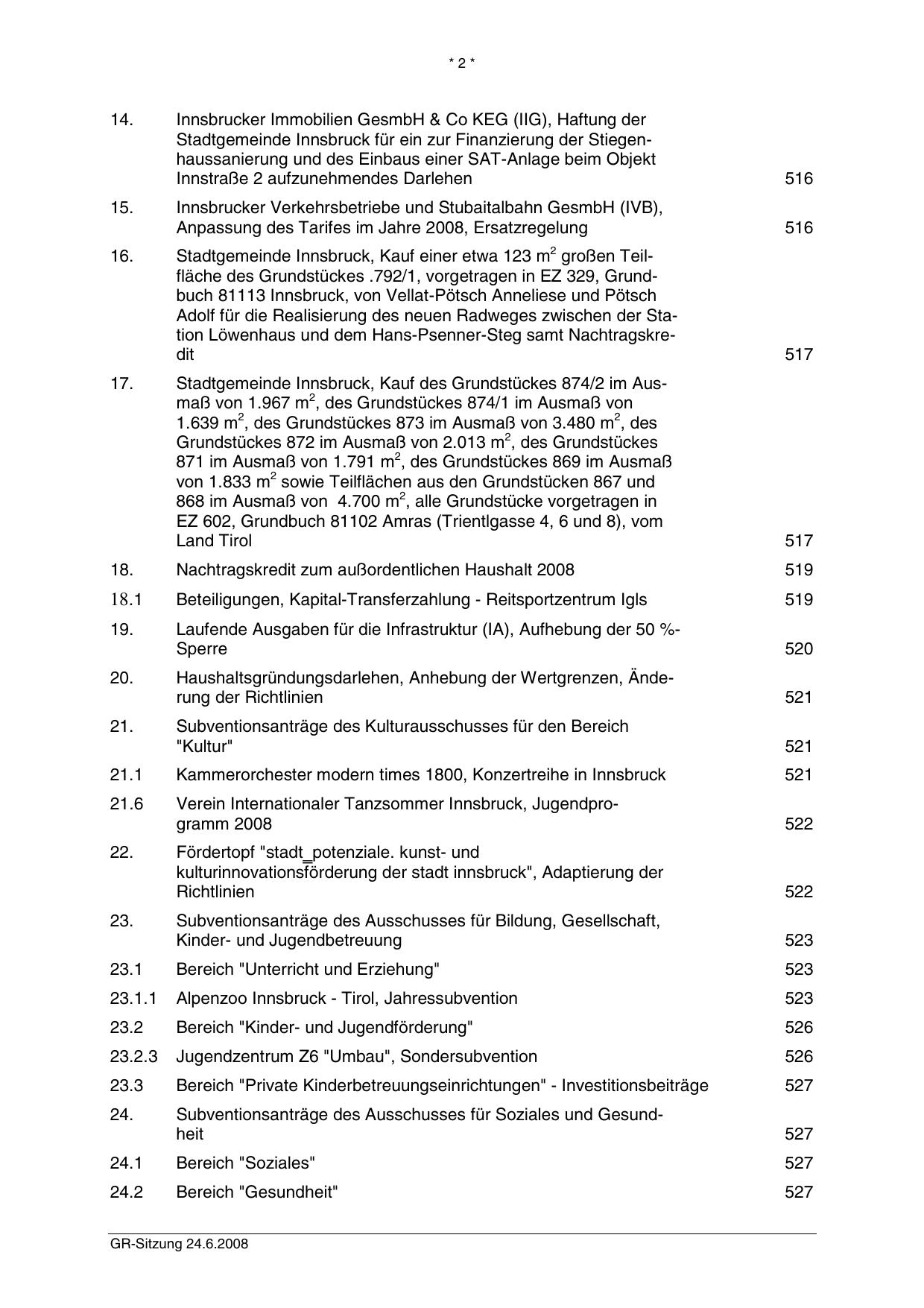 Stadtgemeinde Innsbruck, Kauf des Grundstückes 874/2 im Ausmaß von 1.967 m2, des Grundstückes 874/1 im Ausmaß von