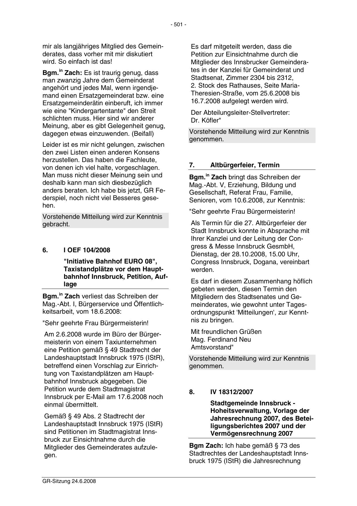 angehört und jedes Mal, wenn irgendjemand einen Ersatzgemeinderat bzw. eine