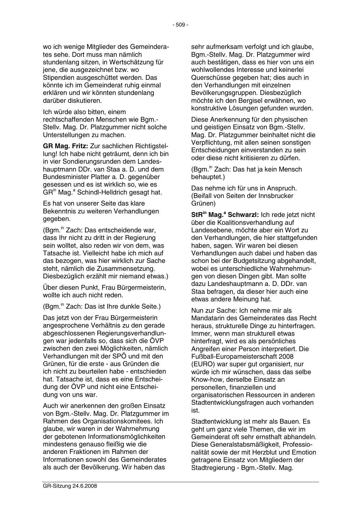 von Bgm.-Stellv. Mag. Dr. Platzgummer im