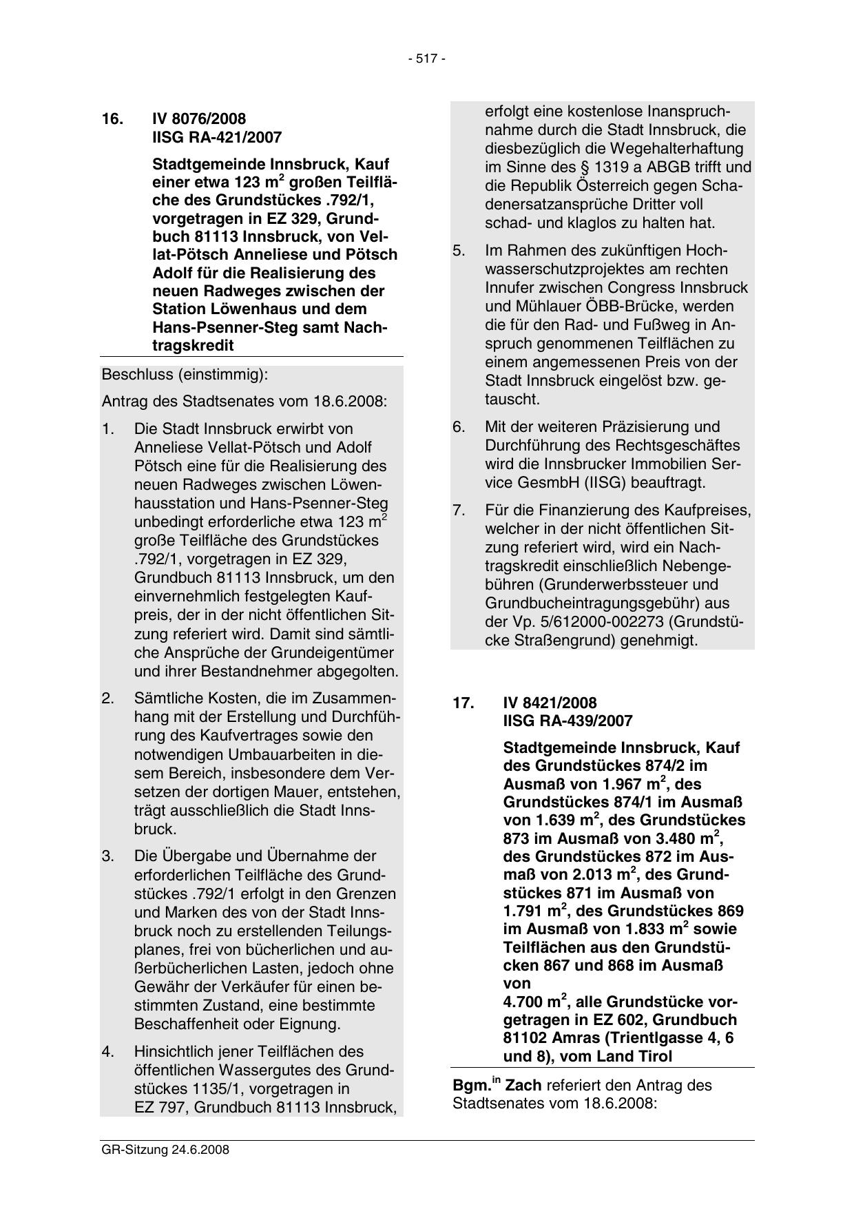Stadt Innsbruck eingelöst bzw. getauscht.