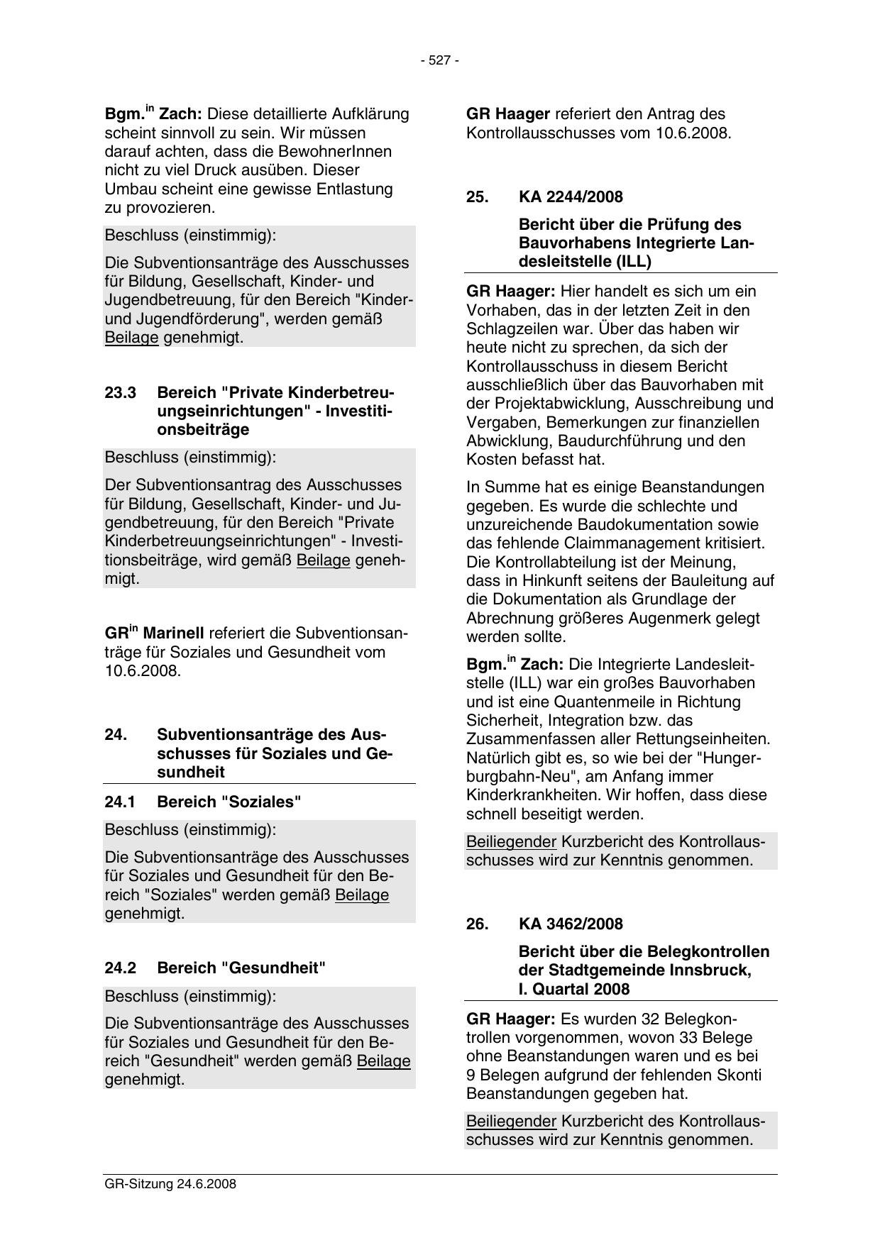 GR Haager: Es wurden 32 Belegkontrollen vorgenommen, wovon 33 Belege