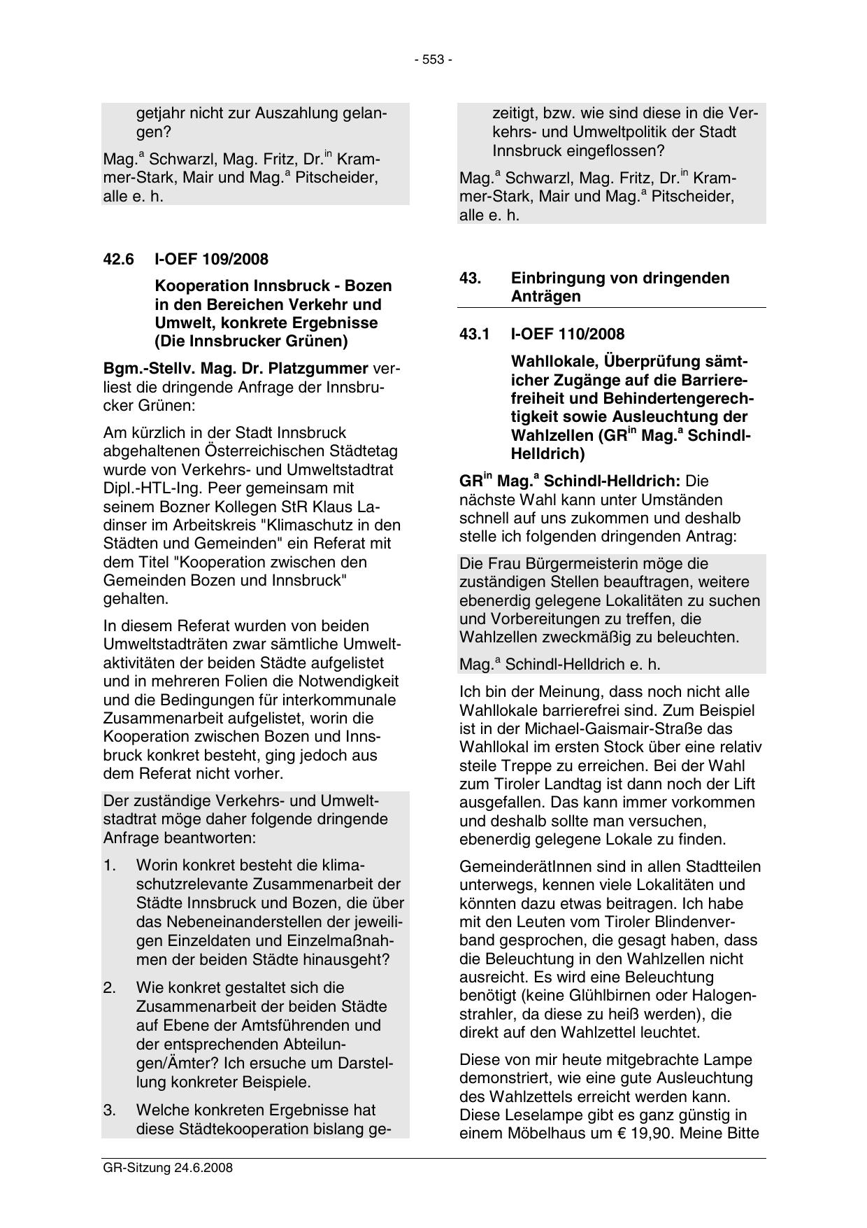 Bgm.-Stellv. Mag. Dr. Platzgummer verliest die dringende Anfrage der Innsbrucker Grünen: