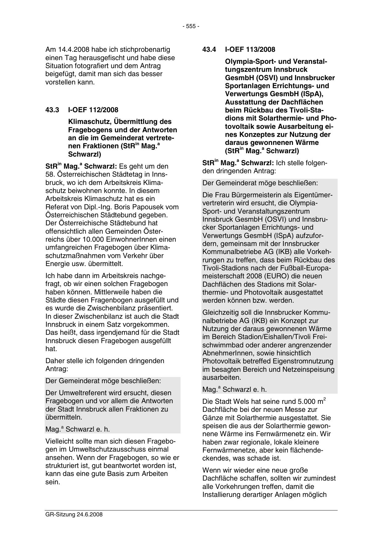 Innsbruck GesmbH (OSVI) und Innsbrucker Sportanlagen Errichtungs- und