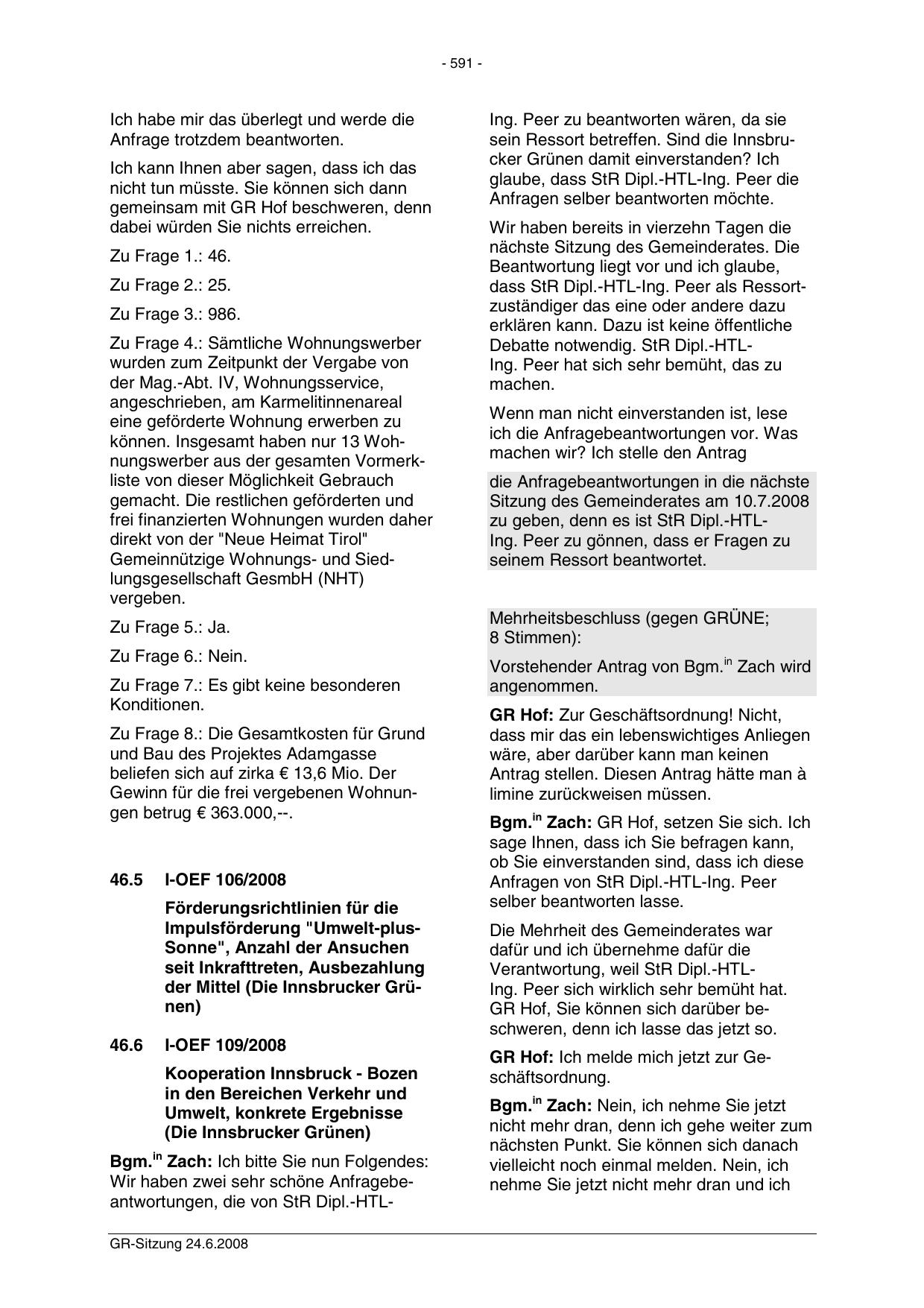 Wir haben zwei sehr schöne Anfragebeantwortungen, die von StR Dipl.-HTLGR-Sitzung 24.6.2008