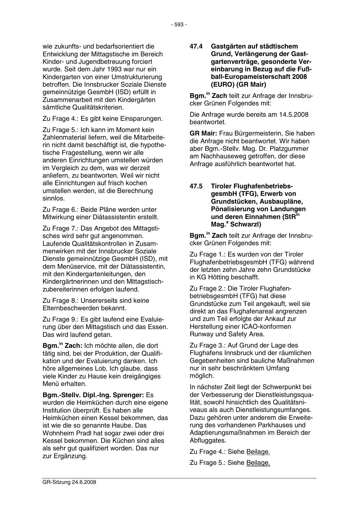 Bgm.in Zach teilt zur Anfrage der Innsbrucker Grünen Folgendes mit: