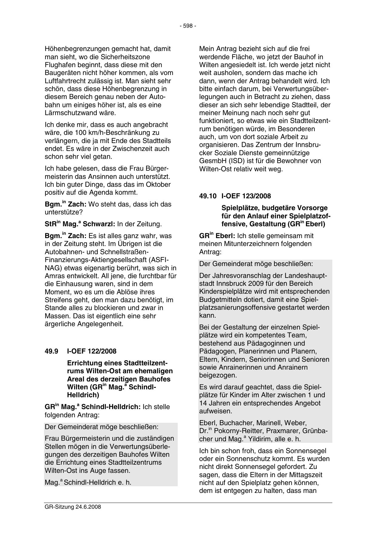 Der Jahresvoranschlag der Landeshauptstadt Innsbruck 2009 für den Bereich