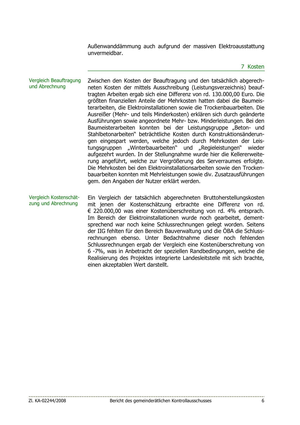 Stahlbetonarbeiten“ beträchtliche Kosten durch Konstruktionsänderungen eingespart werden, welche jedoch durch Mehrkosten der Leistungsgruppen „Winterbauarbeiten“ und „Regieleistungen“ wieder