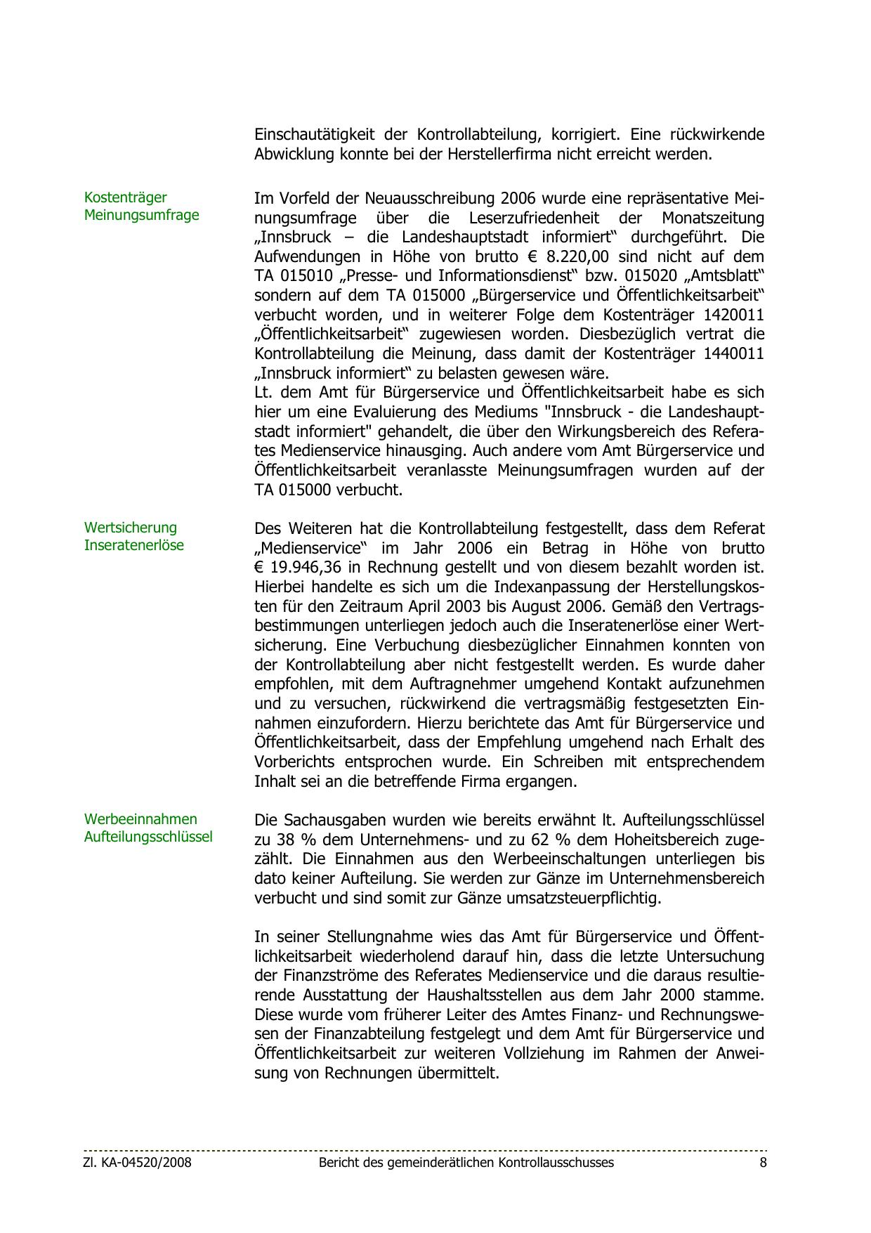 hier um eine Evaluierung des Mediums "Innsbruck - die Landeshauptstadt informiert" gehandelt, die über den Wirkungsbereich des Referates Medienservice hinausging. Auch andere vom Amt Bürgerservice und