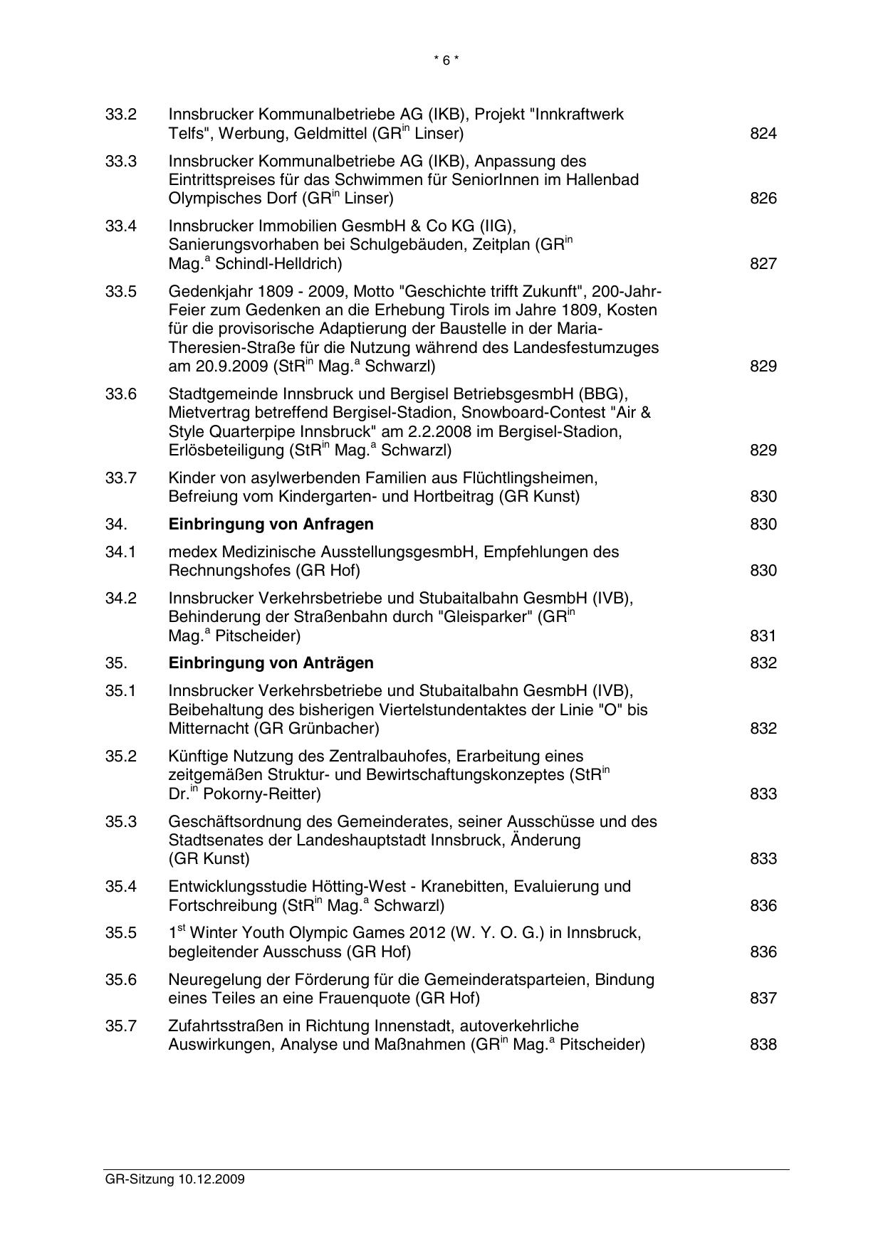 Stadtsenates der Landeshauptstadt Innsbruck, Änderung