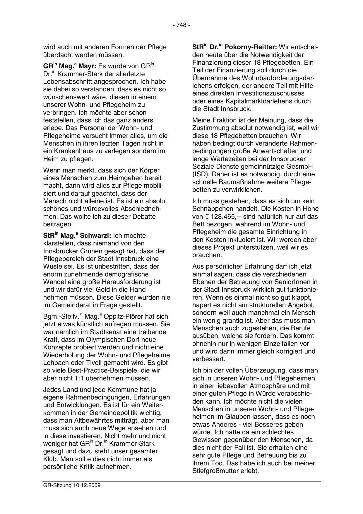 StRin Dr.in Pokorny-Reitter: Wir entscheiden heute über die Notwendigkeit der