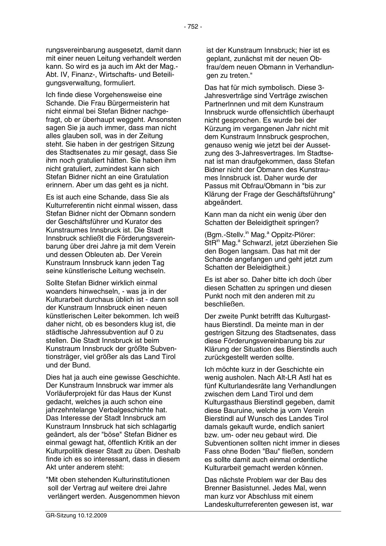 Bidner nicht der Obmann des Kunstraumes Innsbruck ist. Daher wurde der