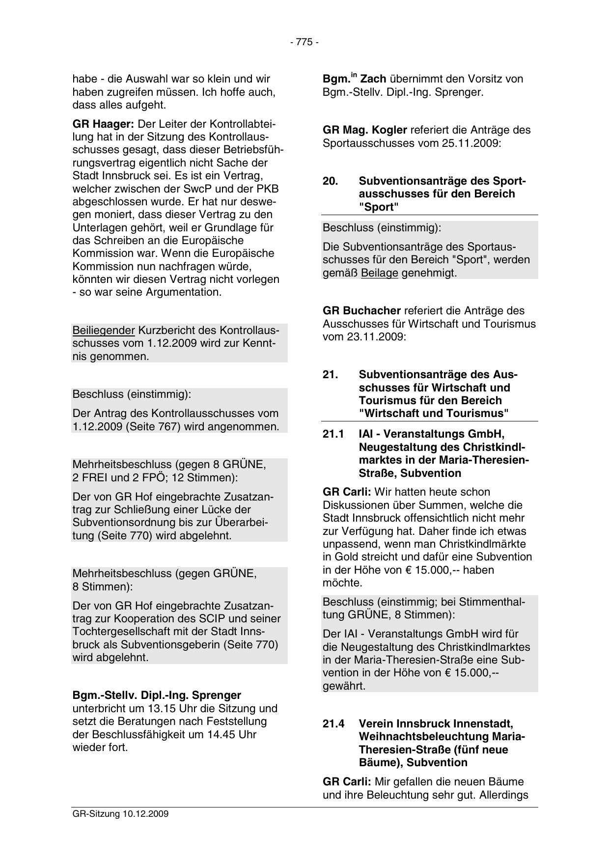 Tochtergesellschaft mit der Stadt Innsbruck als Subventionsgeberin (Seite 770)