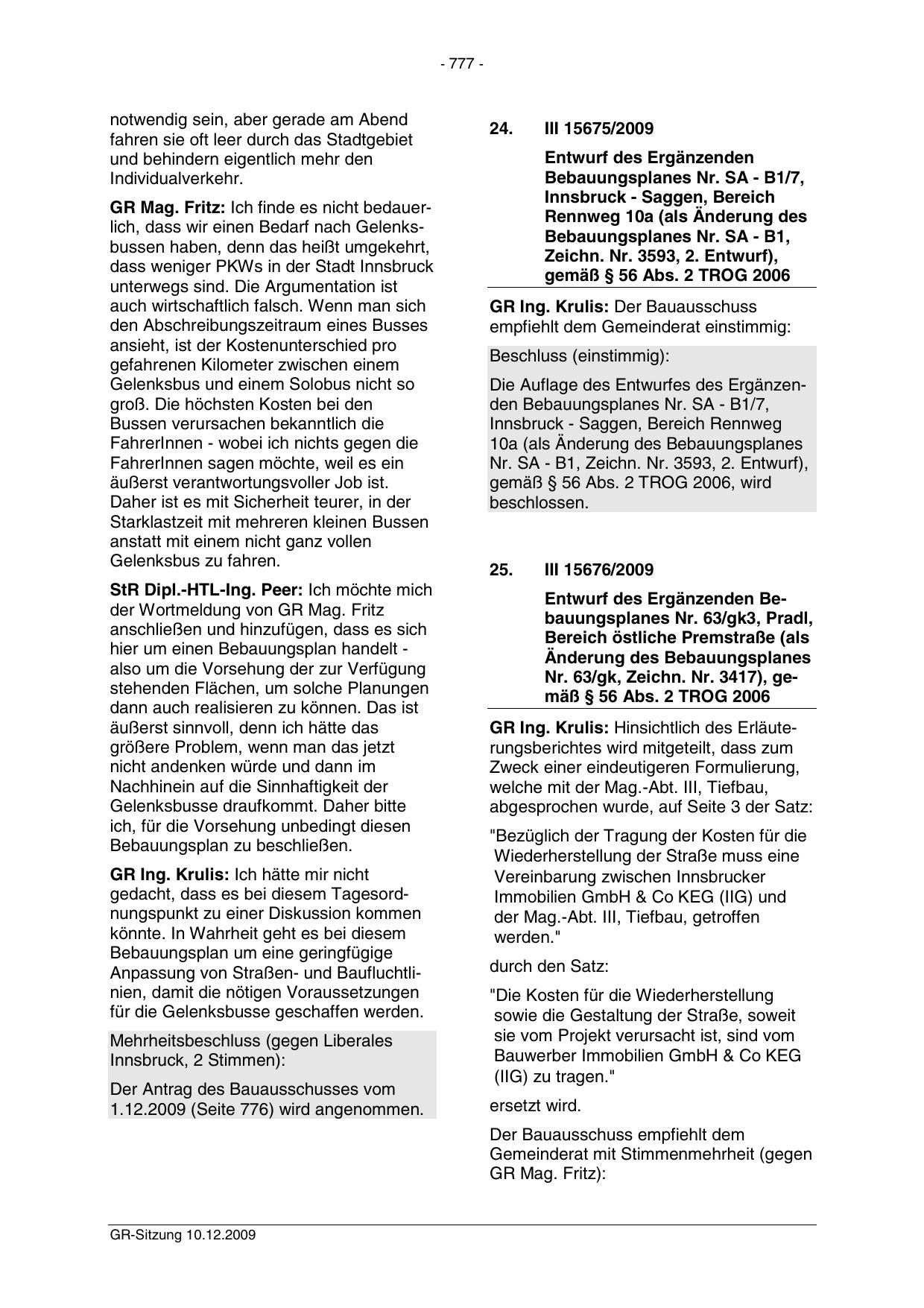 GR Ing. Krulis: Hinsichtlich des Erläuterungsberichtes wird mitgeteilt, dass zum