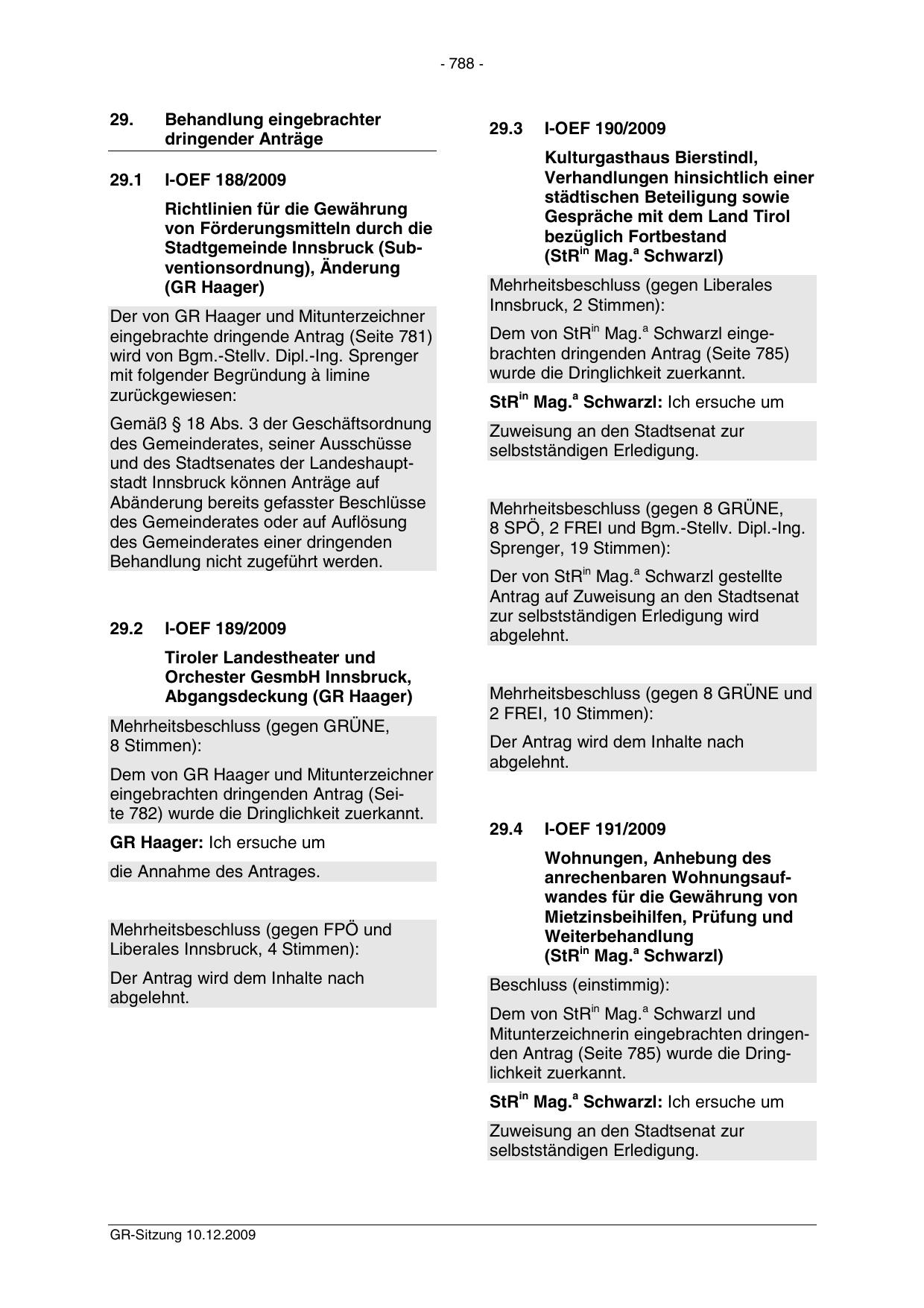 Dem von StRin Mag.a Schwarzl eingebrachten dringenden Antrag (Seite 785)