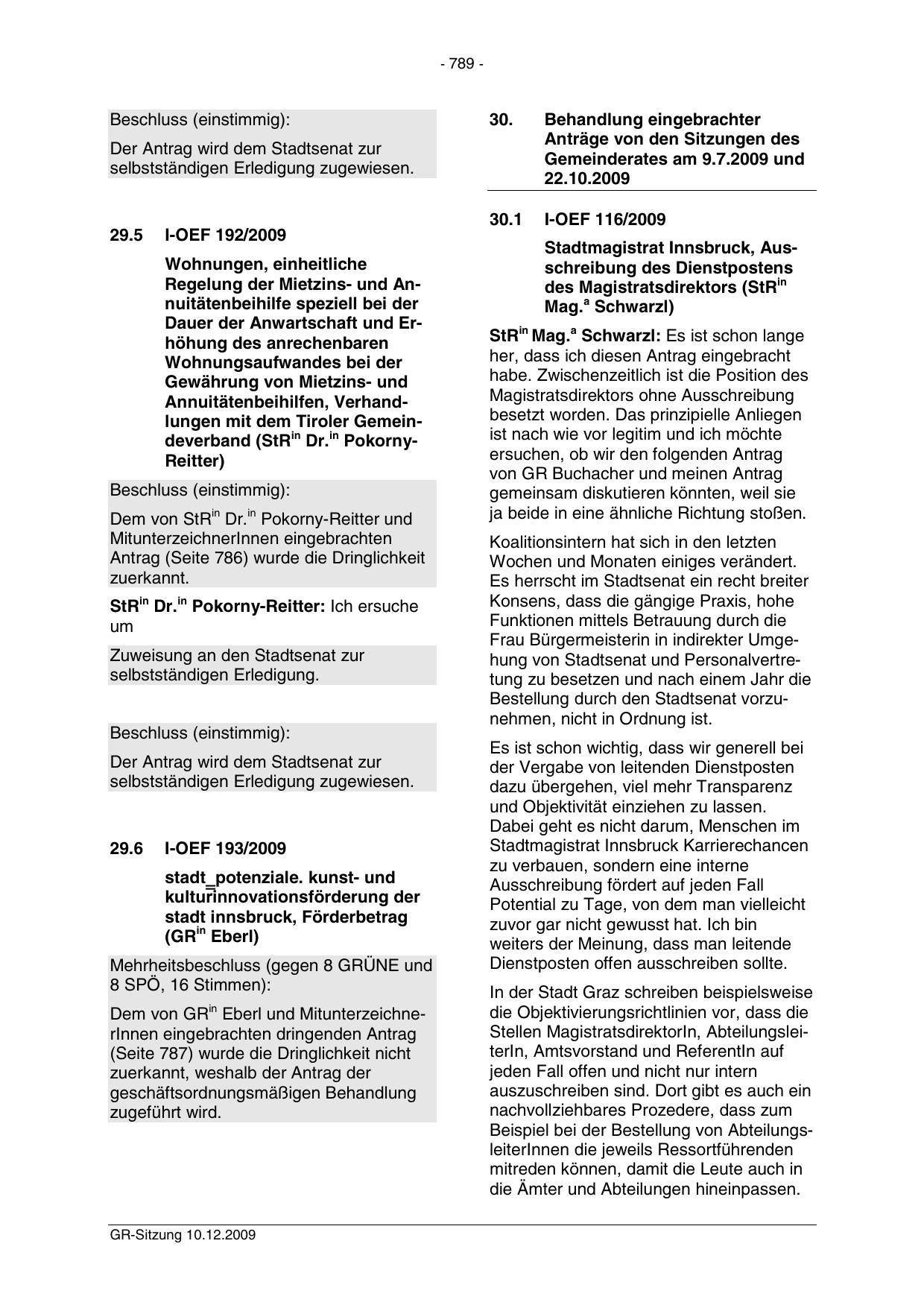 Annuitätenbeihilfen, Verhandlungen mit dem Tiroler Gemeindeverband (StRin Dr.in PokornyReitter)