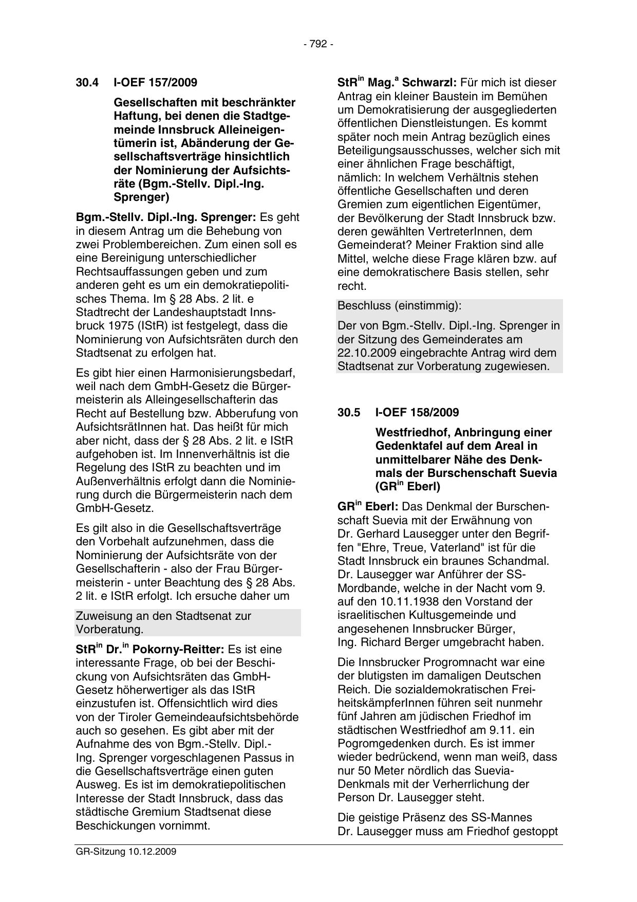 Stadtrecht der Landeshauptstadt Innsbruck 1975 (IStR) ist festgelegt, dass die