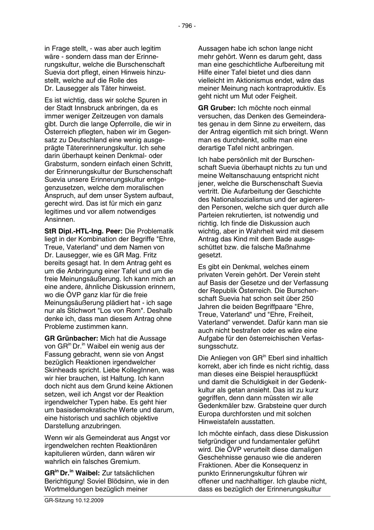 wäre - sondern dass man der Erinnerungskultur, welche die Burschenschaft